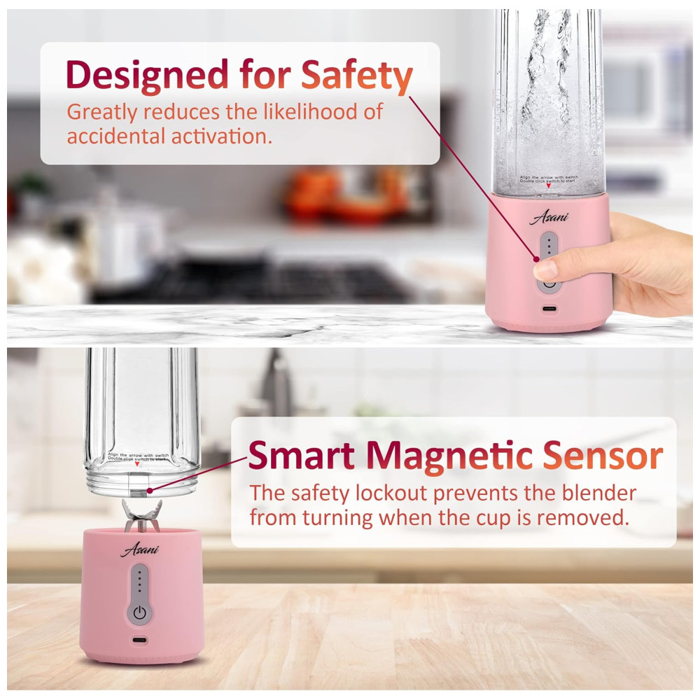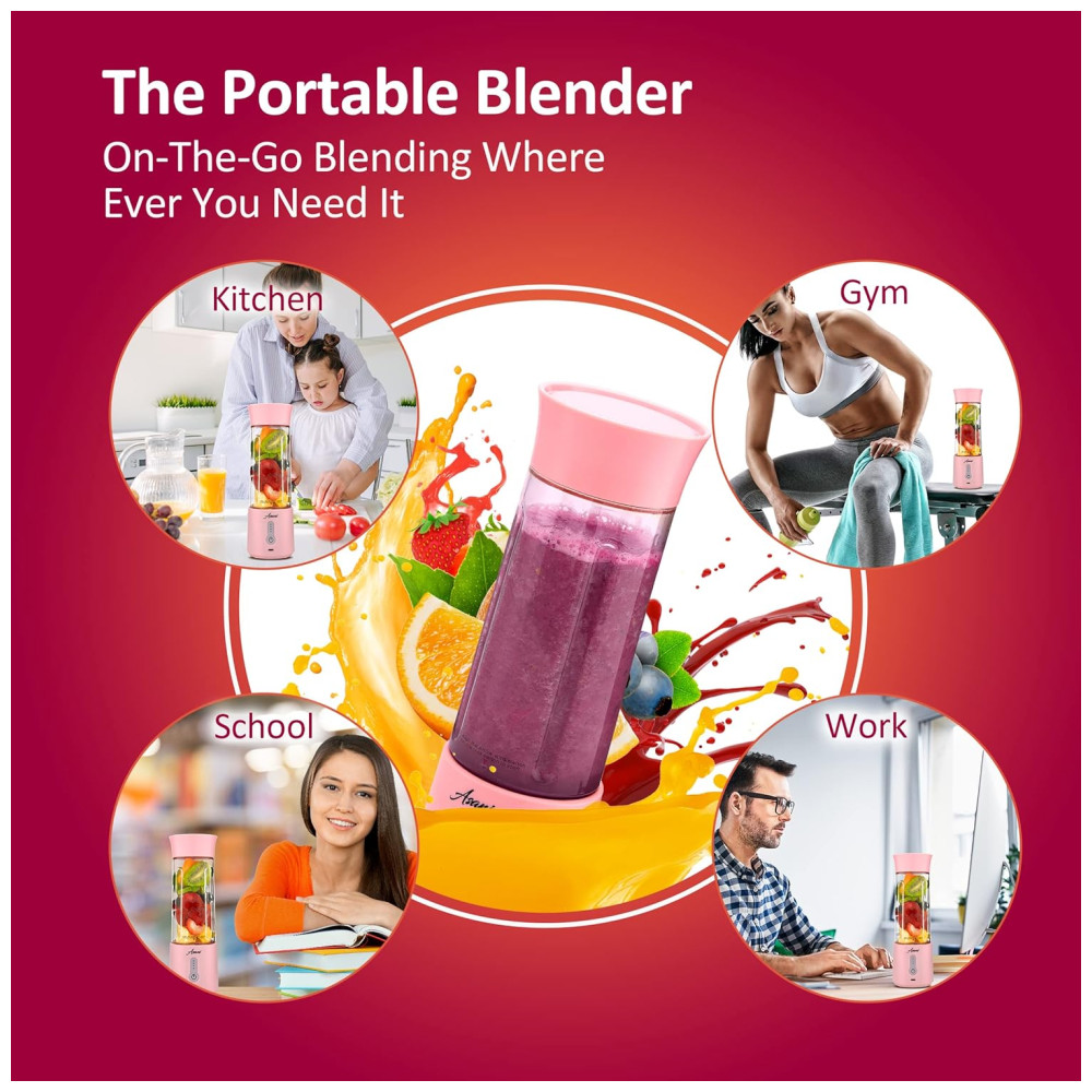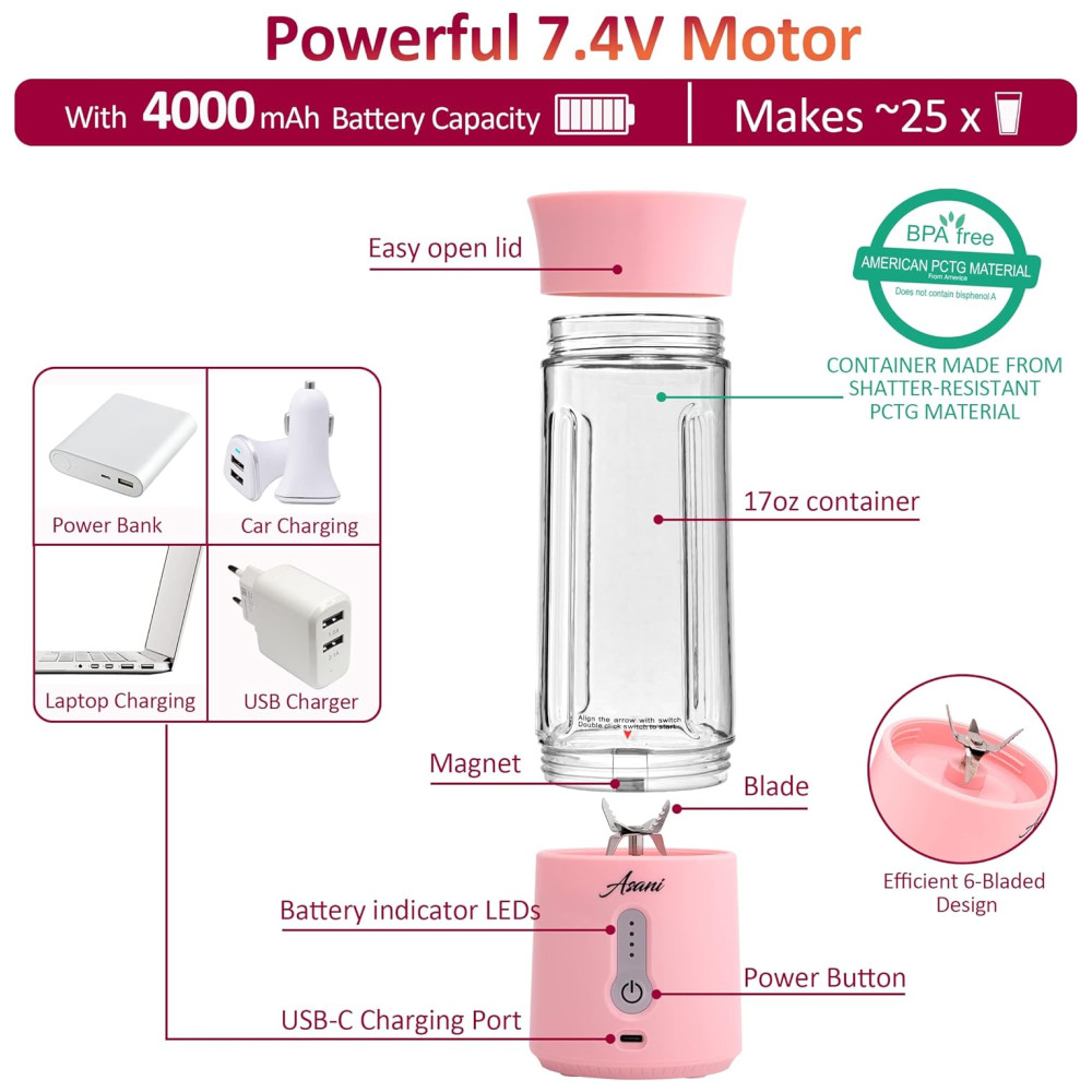 Mini Liquidificador Portátil 500mL com Carregamento USB e Desligamento Automático Asani Rosa