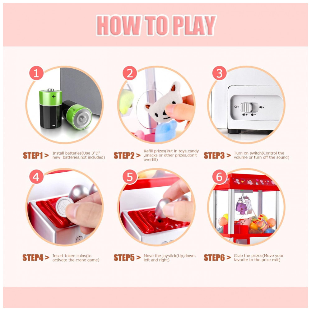 Mini Máquina de Garra para Crianças VISATOR Rosa e Branco com Brinquedos e Música Dispenser de Prêmios para Festa e Diversão em Casa