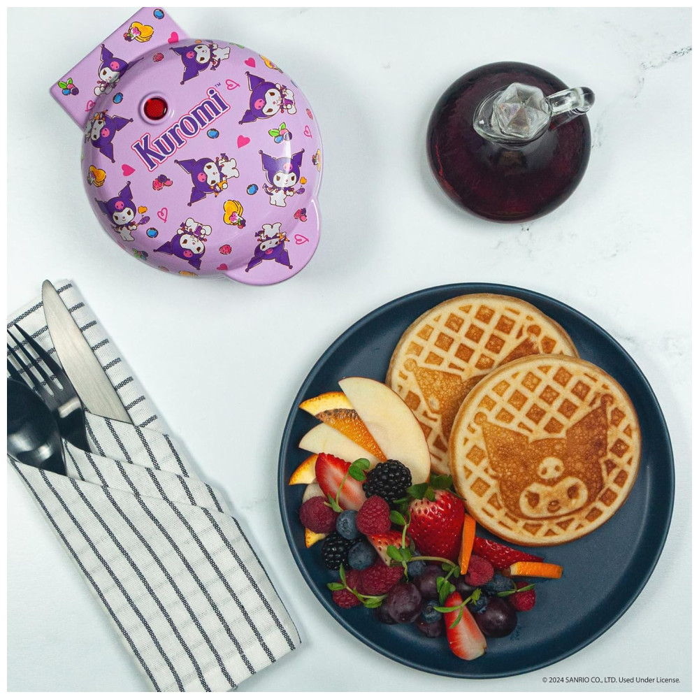 Apresentando a Máquina de Waffle Sanrio Kuromi Mini da Uncanny Brands – uma maneira rebeldemente fofa de começar o seu dia! Esta máquina compacta, que exibe o ousado personagem Kuromi, cria mini waffles com um estilo único.