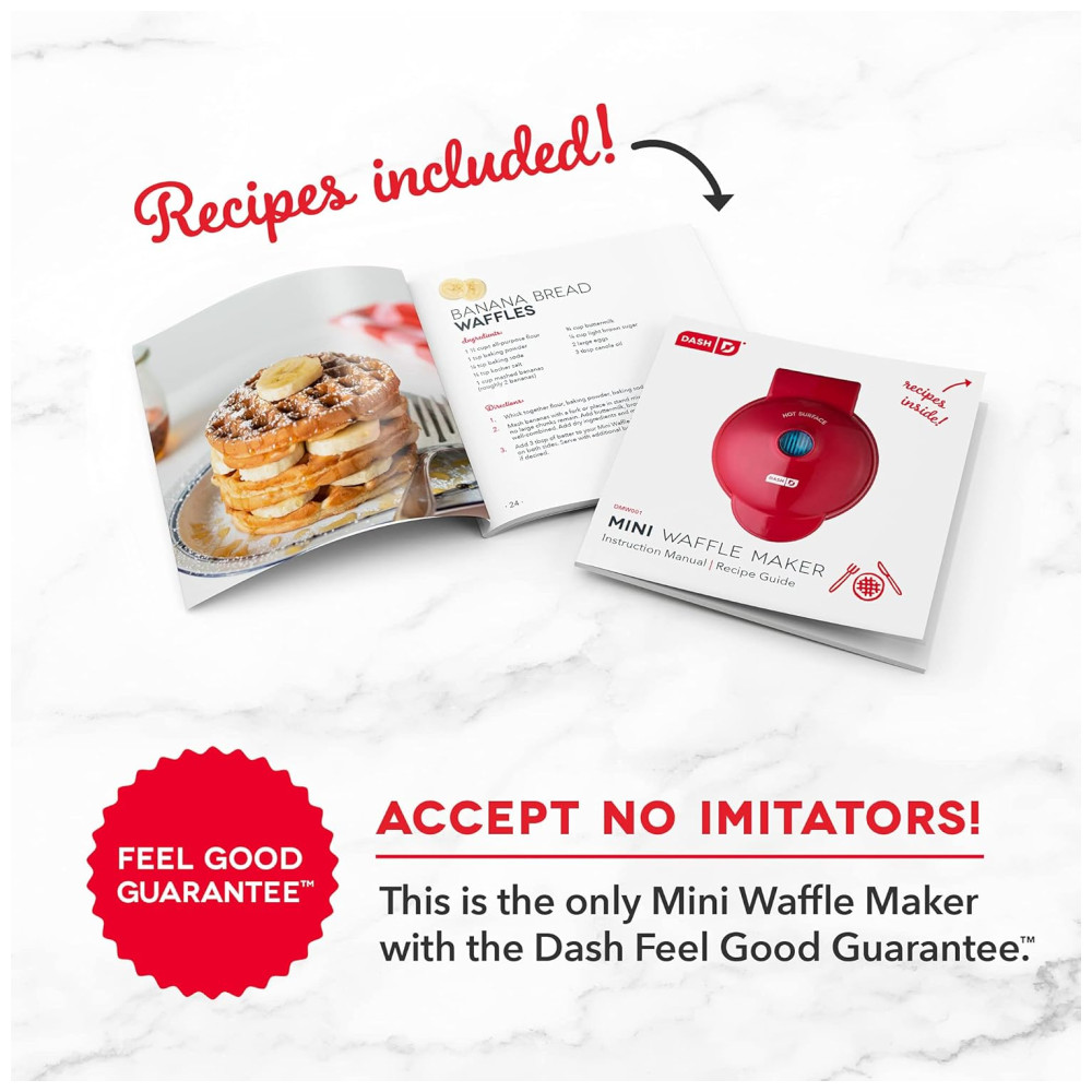 INCLUI Dash Mini Máquina de Waflles e um guia de receitas para que você possa começar a cozinhar imediatamente