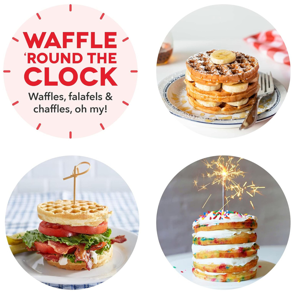 MAIS DO QUE WAFFLES Faça seus clássicos favoritos de café da manhã ou seja criativo com batatas fritas com waffles, biscoitos e até pizzas de biscoito Qualquer massa vai waffle em porções individuais. Ótimo para famílias ou em movimento