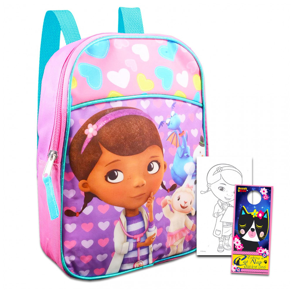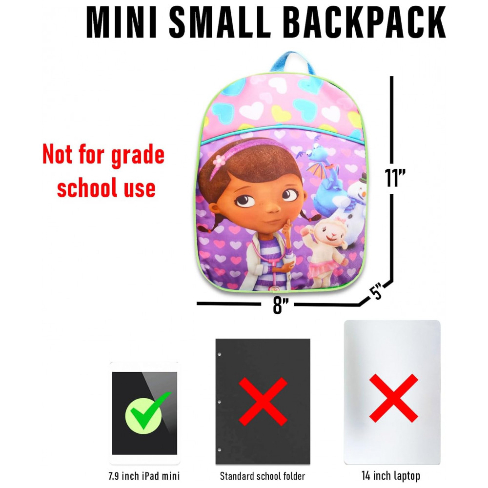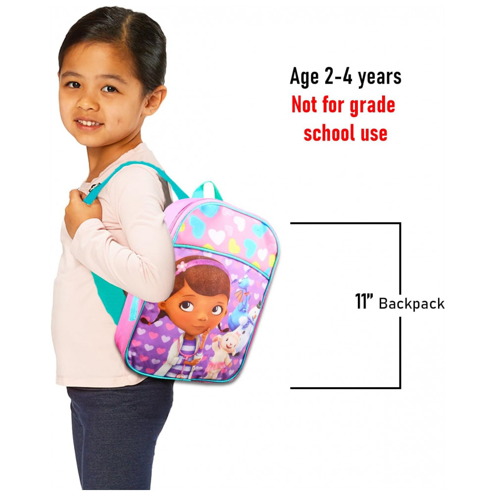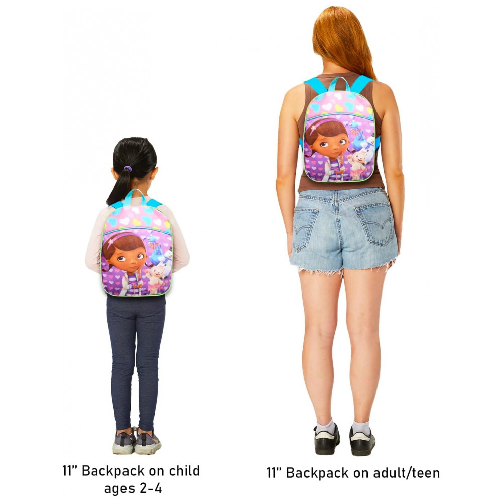 Perfeito em um conjunto de material escolar Doc McStuffins para meninas, a mini mochila Doc McStuffins é ótima para bebês e crianças pequenas que estão voltando para a escola.