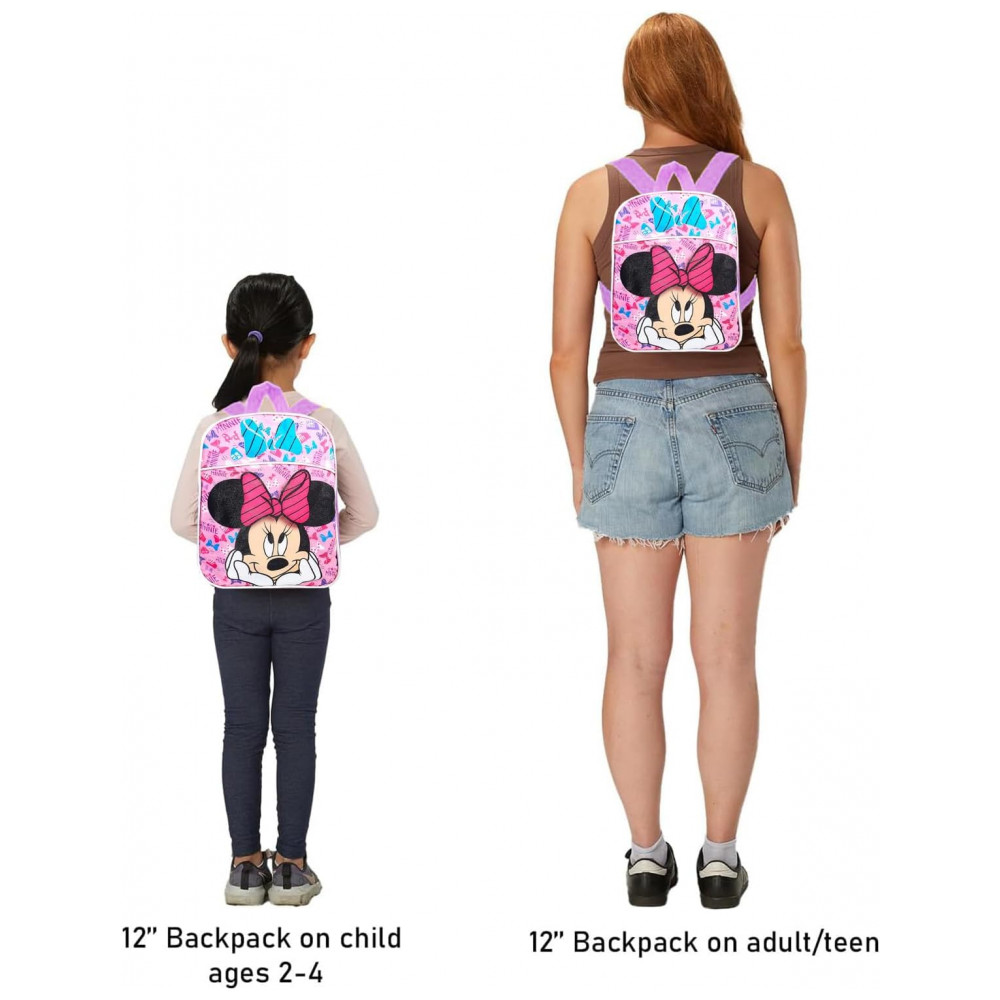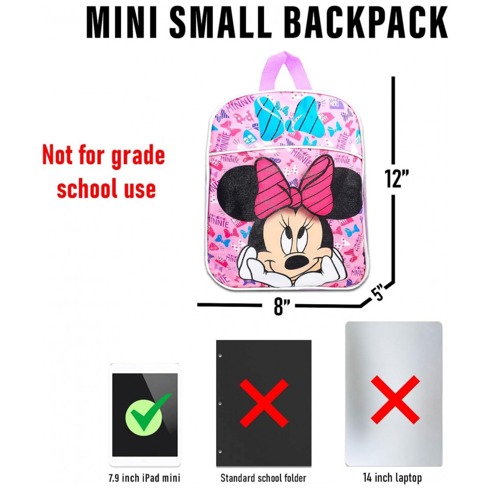 Este conjunto de mini mochila Minnie Mouse para meninas e crianças vem com uma mochila escolar Minnie Mouse de com alças ajustáveis e lindos designs de arco Minnie Mouse. Livre de BPA.