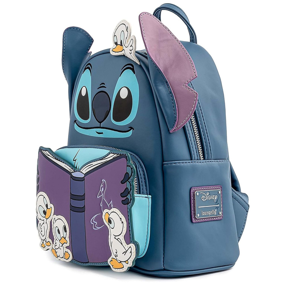 Mini Mochila Stitch 10L com Zíper Alças Ajustáveis e Forro em Tecido Estampado Loungefly Azul