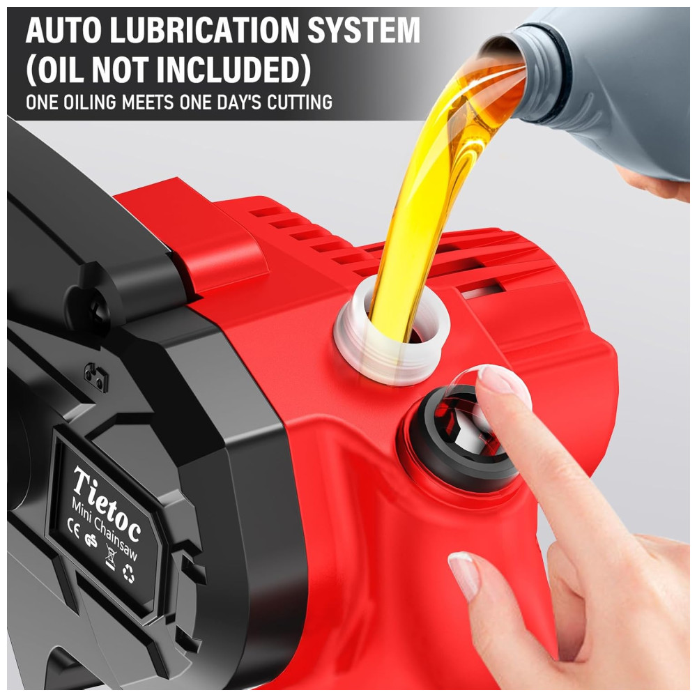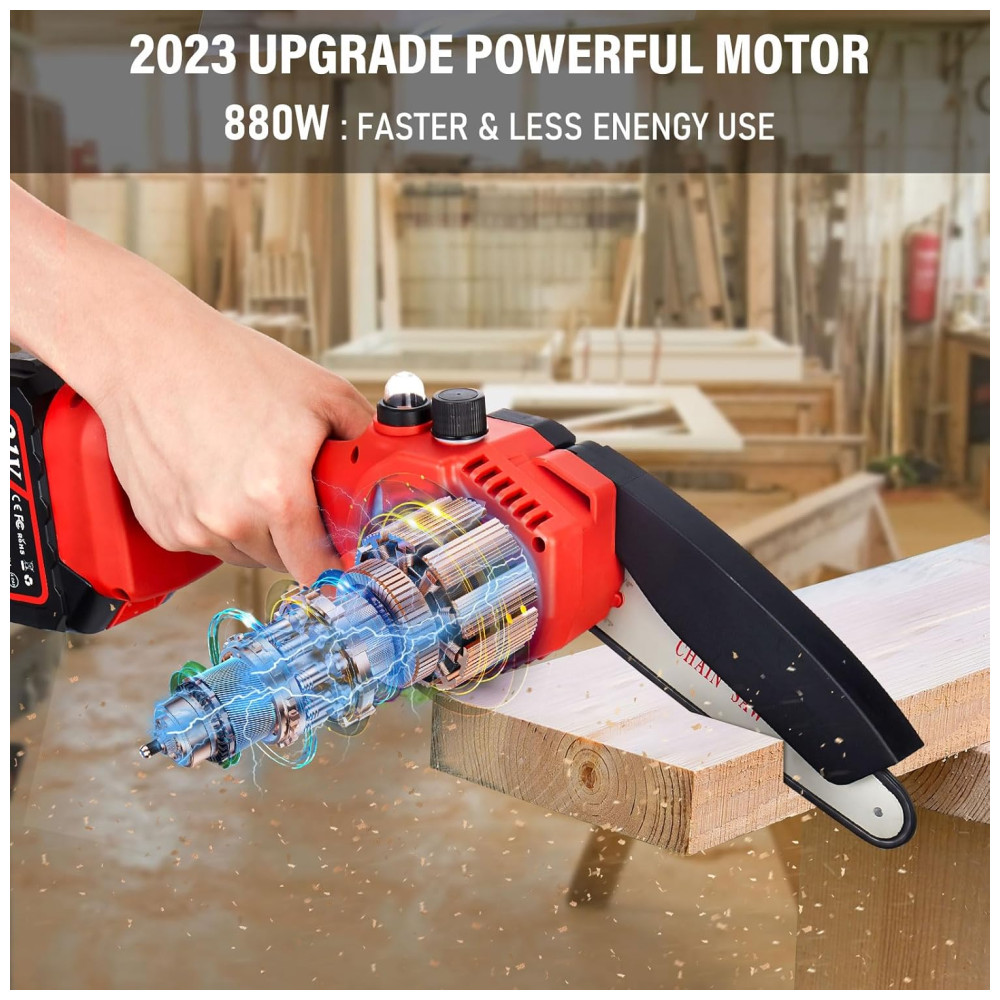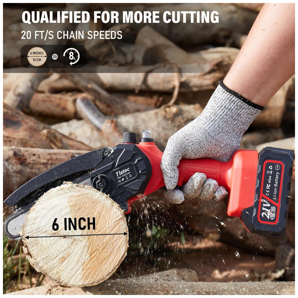 Mini Motosserra Elétrica Portátil Movida a Bateria 21V 880W Tietoc Vermelha