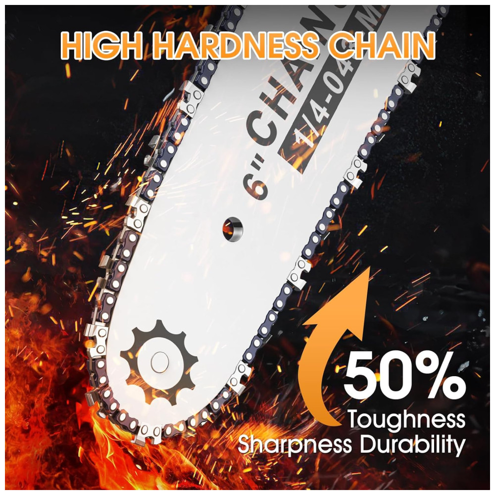 O kit inclui 2 correntes de liga temperada e uma lima para afiação, garantindo cortes precisos e maior vida útil do equipamento.