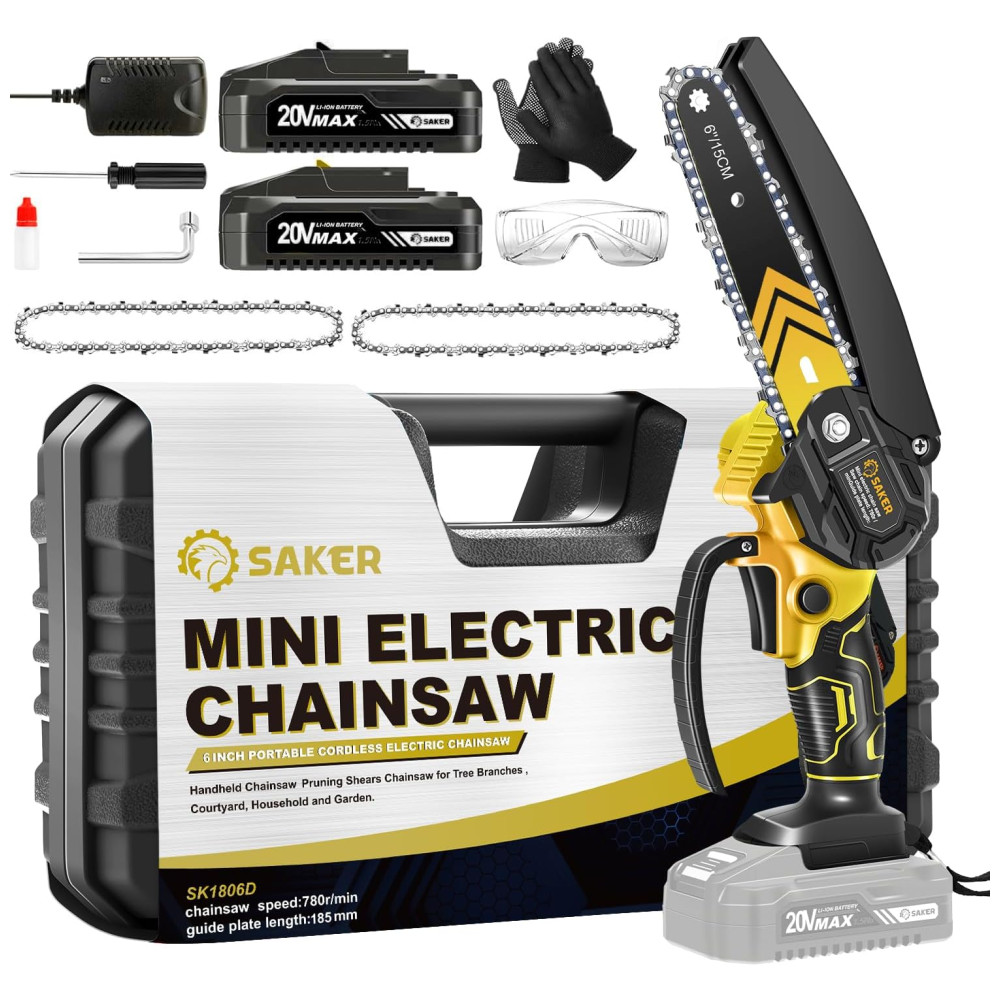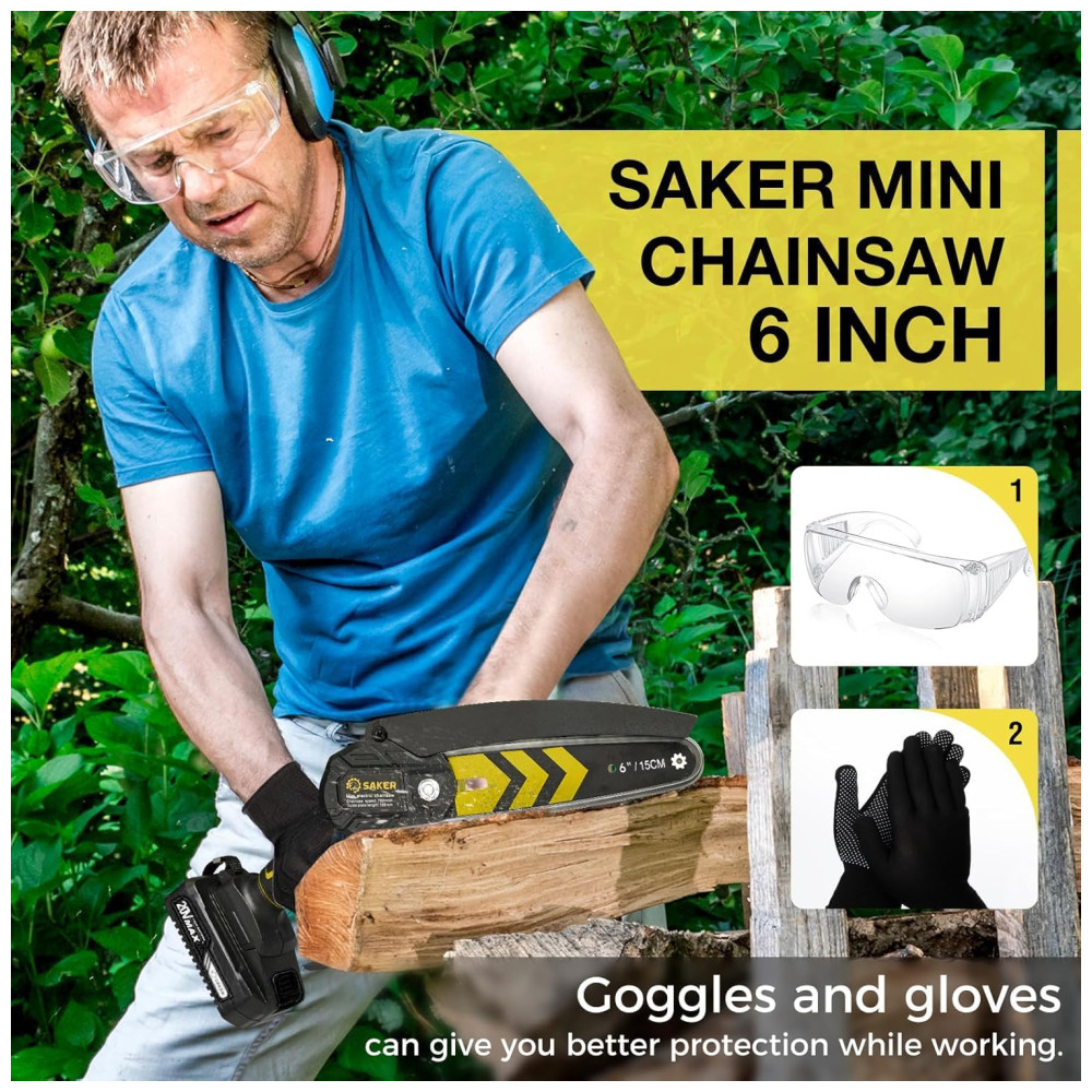 Embora a mala seja pequena, ela pode armazenar todos os acessórios perfeitamente. A mini motosserra Smart Saker é uma motosserra pequena, prática, rápida e fácil de montar, levando apenas 1 minuto para toda a instalação. A motosserra de 6 polegadas sem fio usa motor de alta eficiência com fio de cobre atualizado, oferecendo à sua ferramenta maior tempo de execução, mais torque e mais potência, o que leva a menos desgaste, estendendo a vida útil da motosserra portátil Smartsaker.