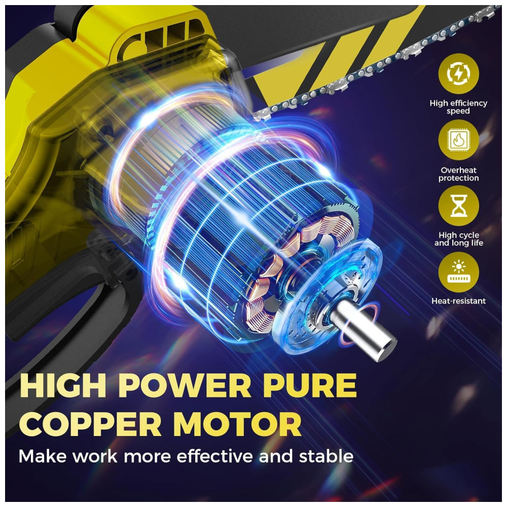 Esta mini motosserra sem fio de 6 polegadas é uma ferramenta perfeita para mães, amigas, faz tudo e mulheres que gostam de trabalhar com madeira ou de organizar o quintal. Com um comprimento de face cortável de 6 polegadas e um comprimento total de chapa de aço de 9 polegadas, você pode cortar árvores mais grossas para atender melhor às suas necessidades. A mini motosserra Saker adapta uma corrente guia de alta qualidade que passou por um processo de têmpera profunda para garantir um corte suave. Além disso, usa um motor de cobre puro, que é muito potente, aumentando a eficiência de corte de forma rápida.