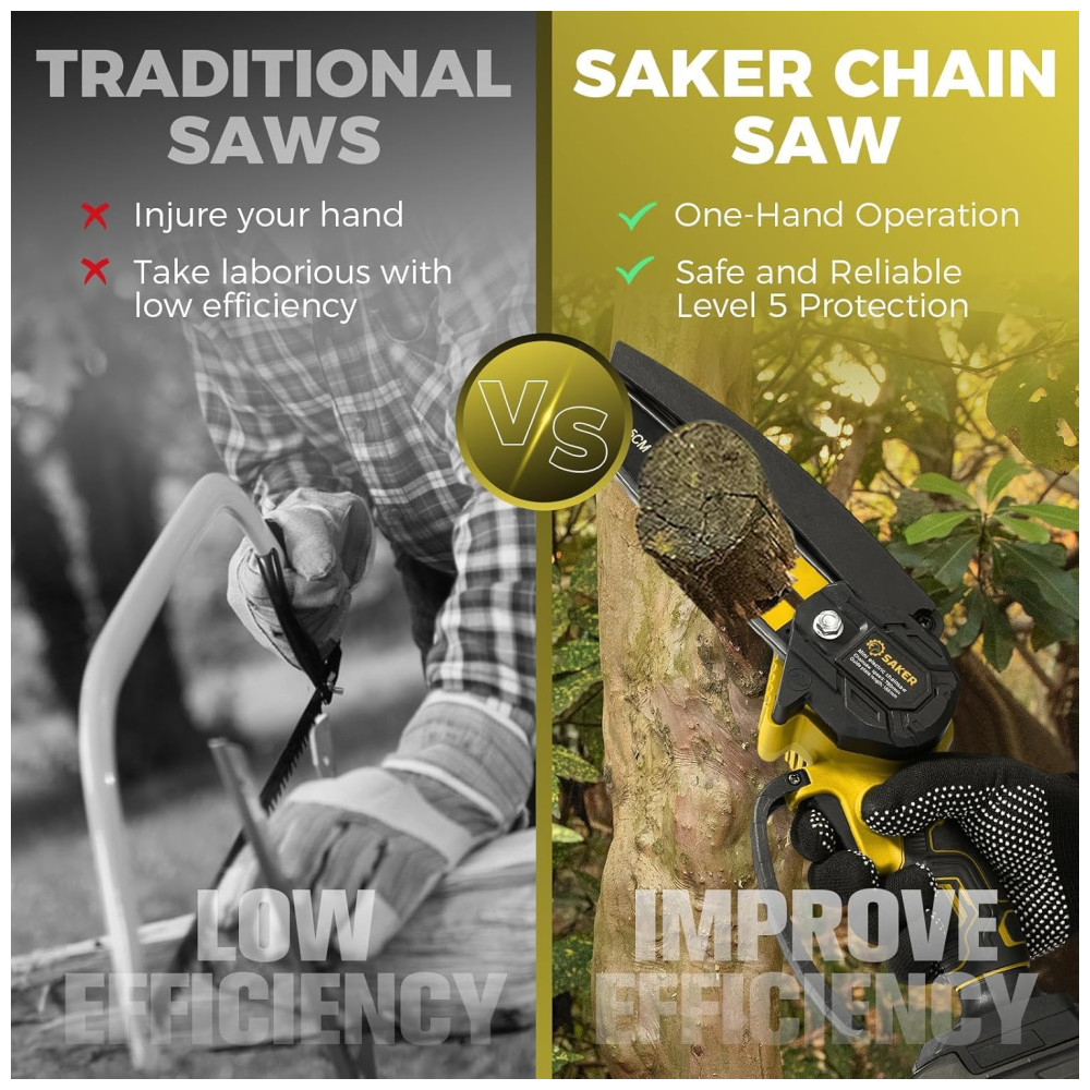 Com uma superfície de corte mais longa, você pode cortar árvores um pouco mais grossas com menos esforço, proporcionando uma melhor experiência. A mini motosserra Saker 6 será uma boa ajudante em seu trabalho de marcenaria Estamos confiantes na qualidade do produto. No processo de uso diário, se a mini motosserra sem fio apresentar problemas de qualidade ou se você tiver alguma dúvida sobre as motosserras elétricas, entre em contato conosco a qualquer momento, estamos sempre disponíveis.