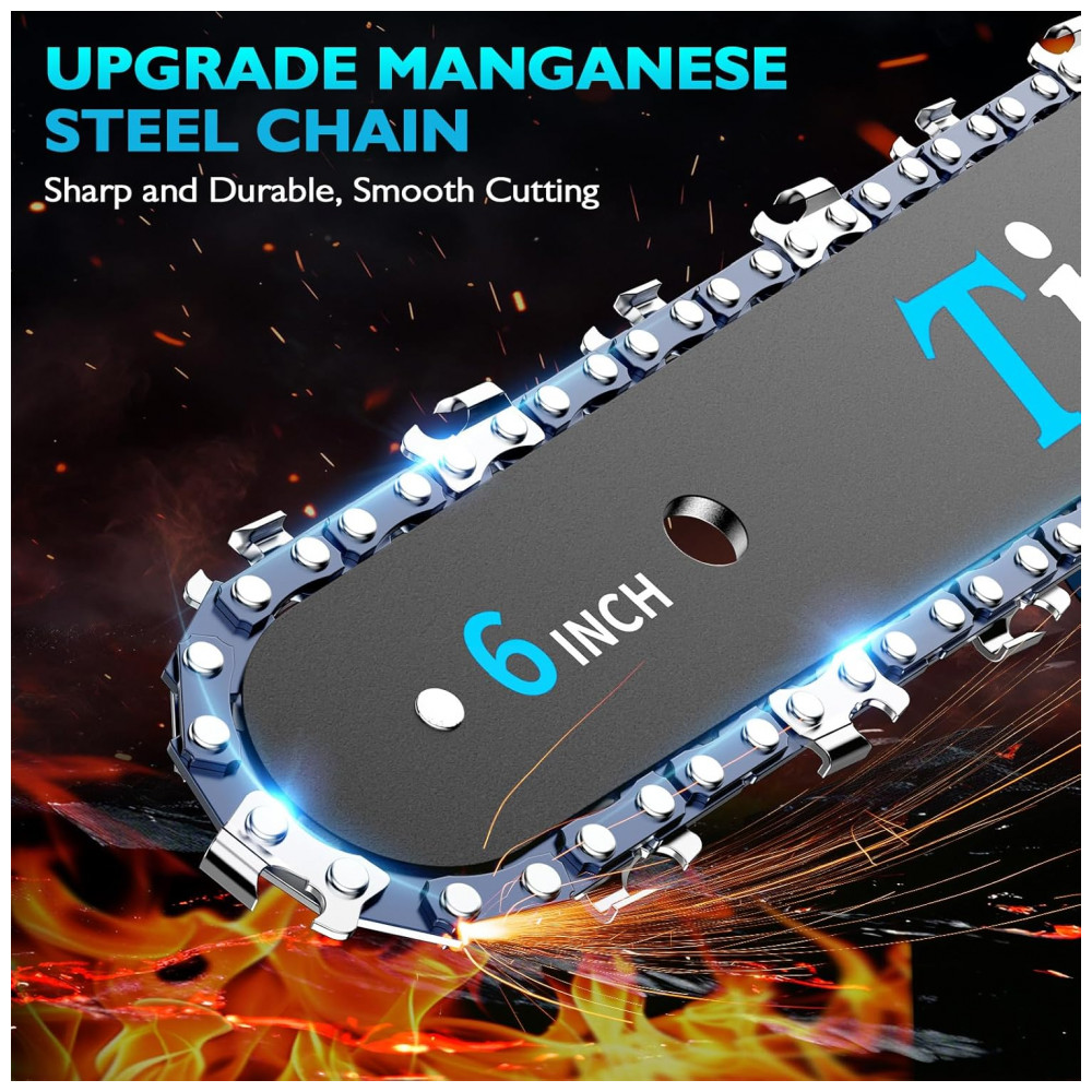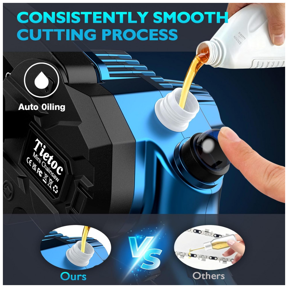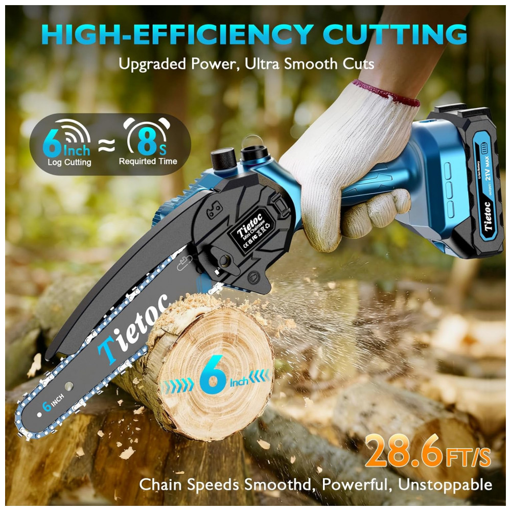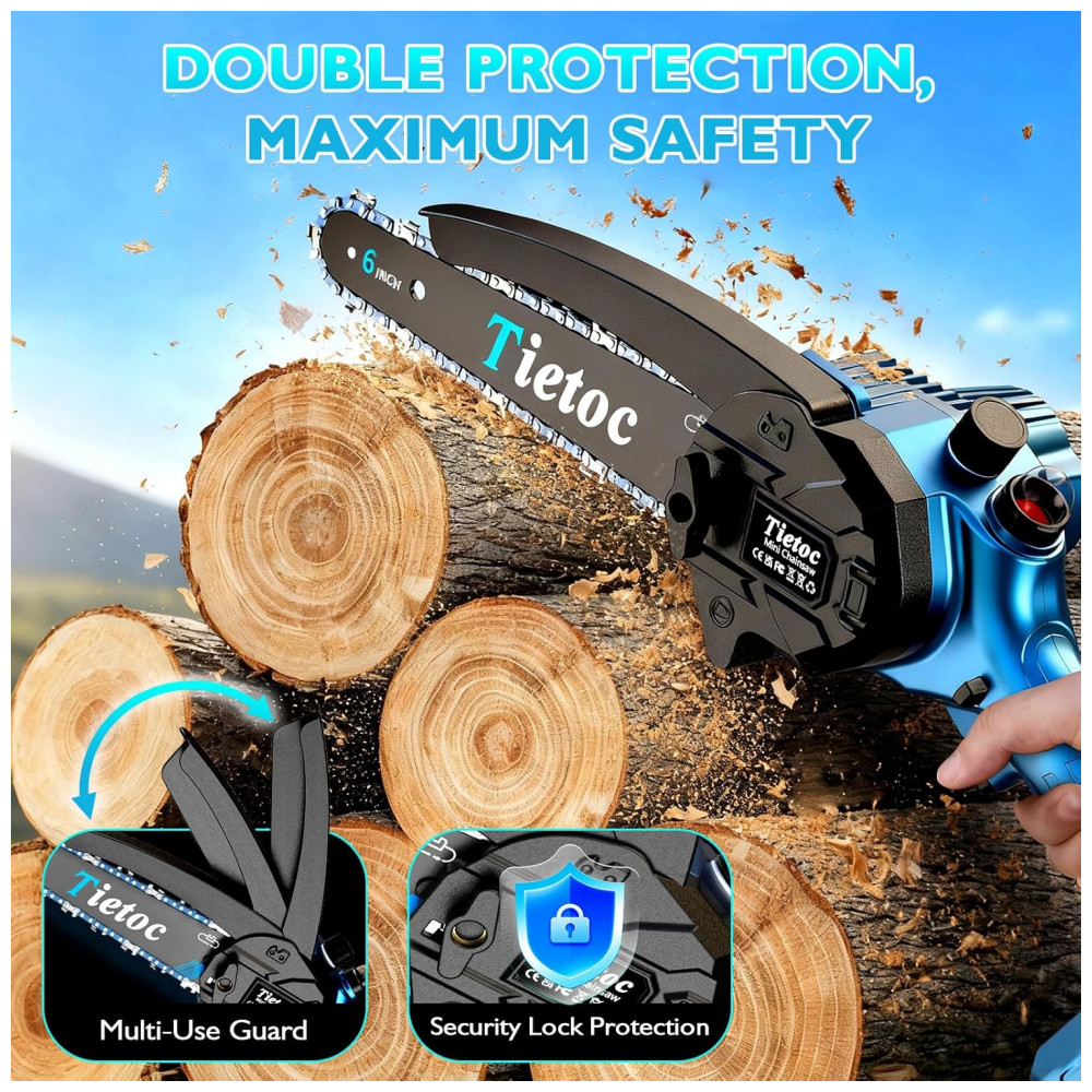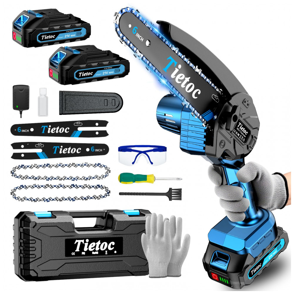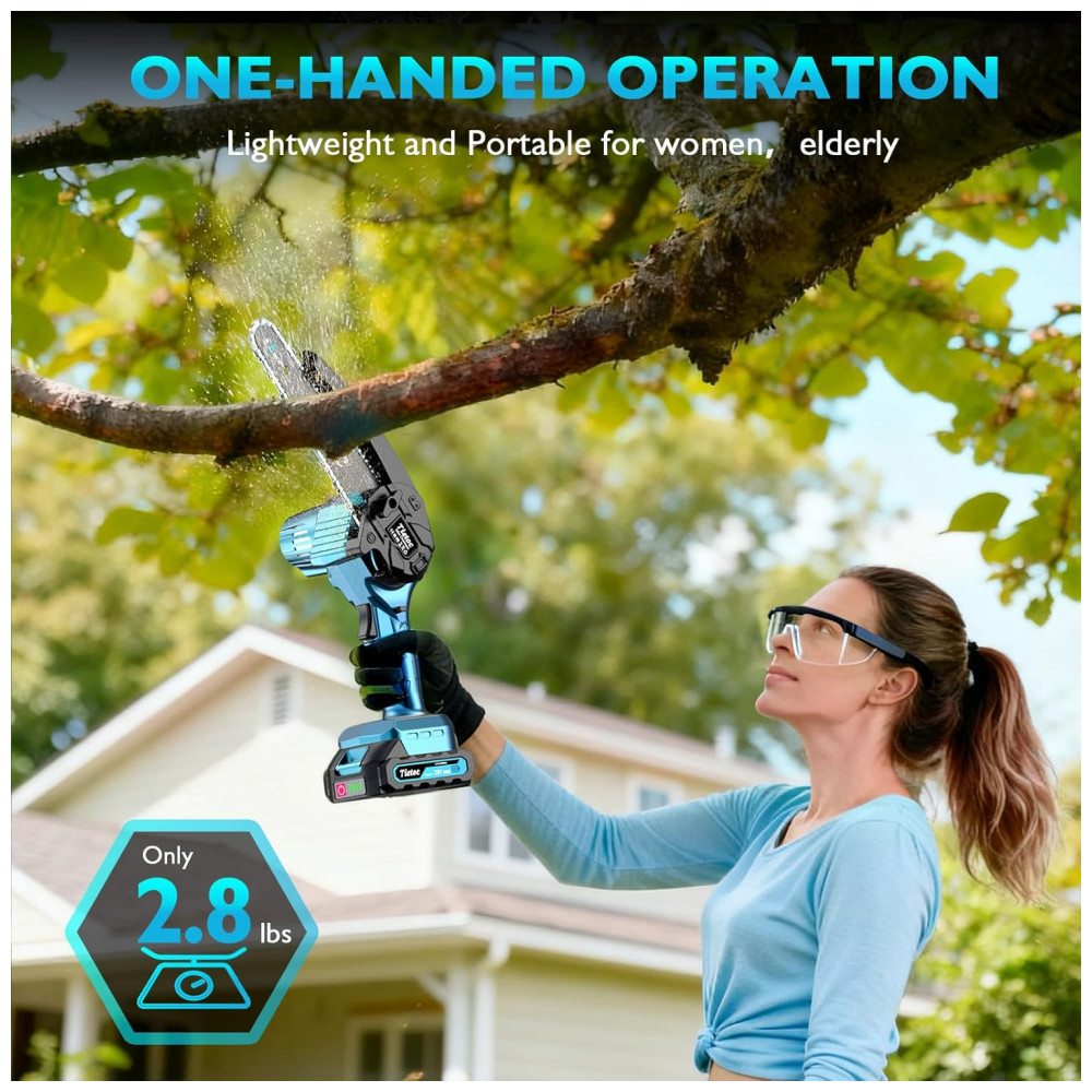 Mini Motosserra Elétrica Portátil sem Fio para Poda de Galhos Alimentada por 2 Baterias 21V Tietoc Azul