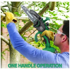 A Mini Motosserra Goldsea é uma ferramenta de corte de alta qualidade que oferece desempenho potente, cortando até 30 vezes mais rápido e consumindo 20 vezes menos energia do que as mini motosserras tradicionais.