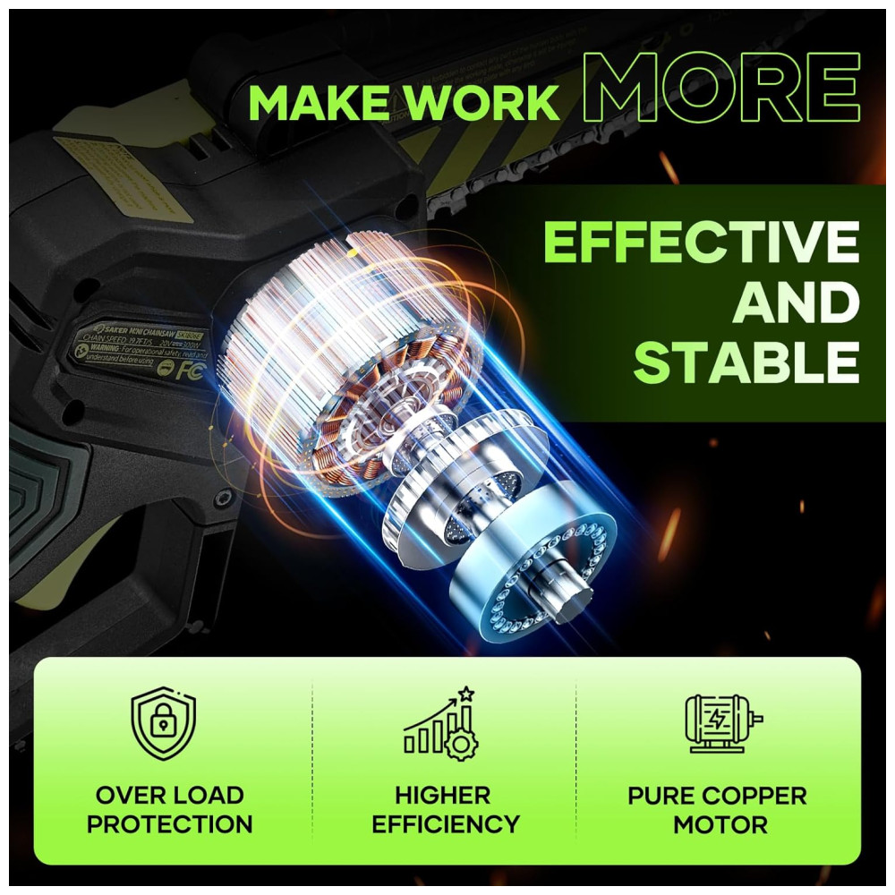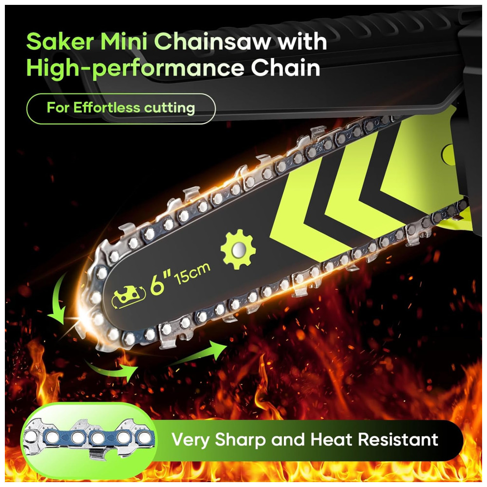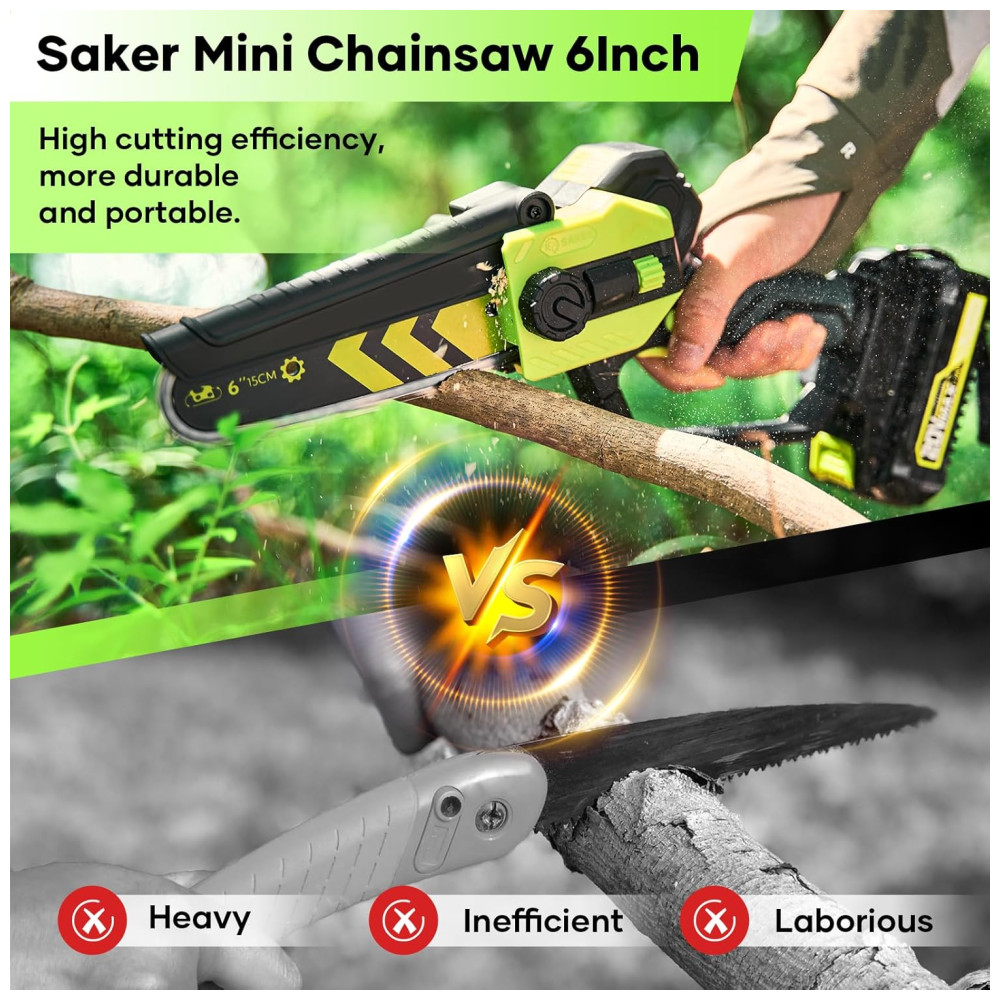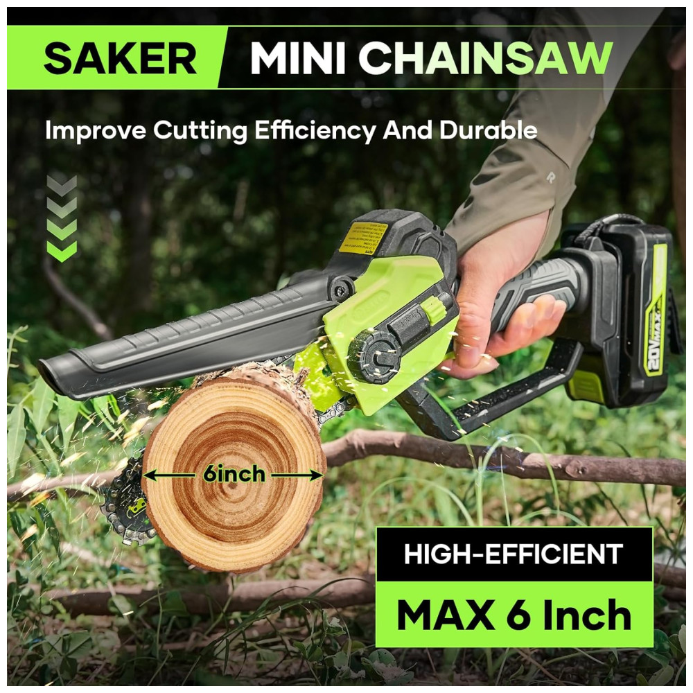 Com 6 polegadas de área cortável, esta motosserra é capaz de lidar com árvores mais grossas, tornando o trabalho mais eficiente e com menos esforço. Seja para marcenaria ou jardinagem, a mini motosserra Saker é sua aliada ideal!