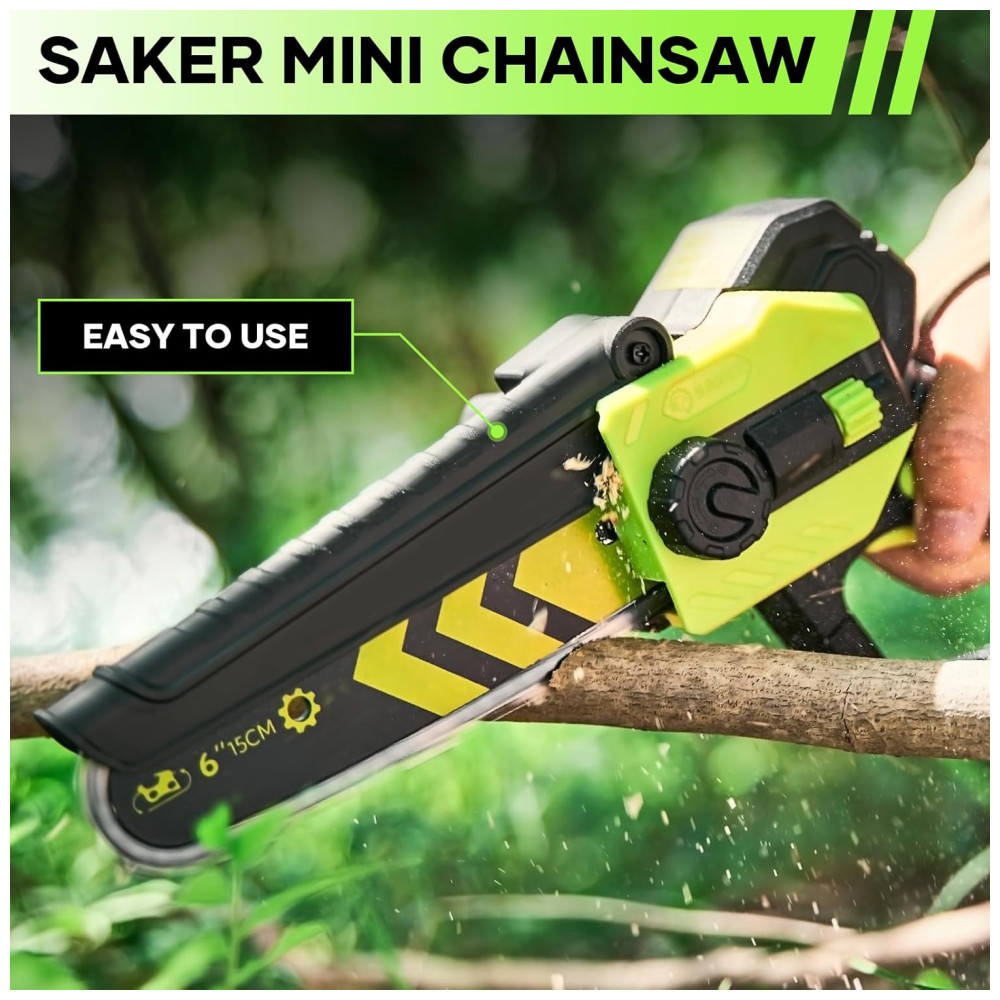 Pesando pouco e com design ergonômico antiderrapante, a mini motosserra Saker é fácil de segurar e controlar. Perfeita para uso doméstico e ao ar livre, sendo prática até mesmo para mulheres e idosos.
