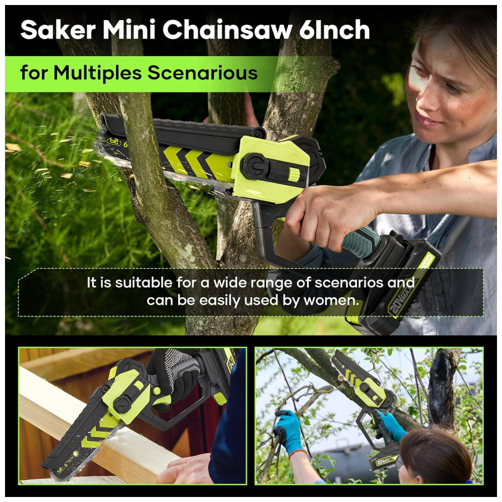 Mini Motosserra Elétrica sem Fio para Poda de Galhos Movida a Bateria 20V Saker Verde