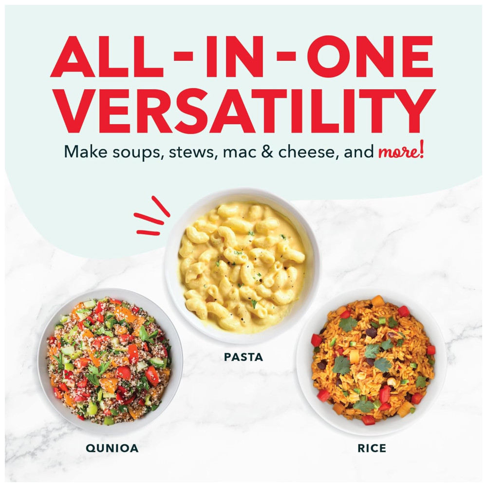 MAIS QUE ARROZ Aveia, ensopado, sopa, quinoa, arroz e macarrão A capacidade de 2 xícaras permite o controle de porções mais saudáveis, ou individuais, rápido e fácil café da manhã, almoço, jantar, lanches e acompanhamentos.