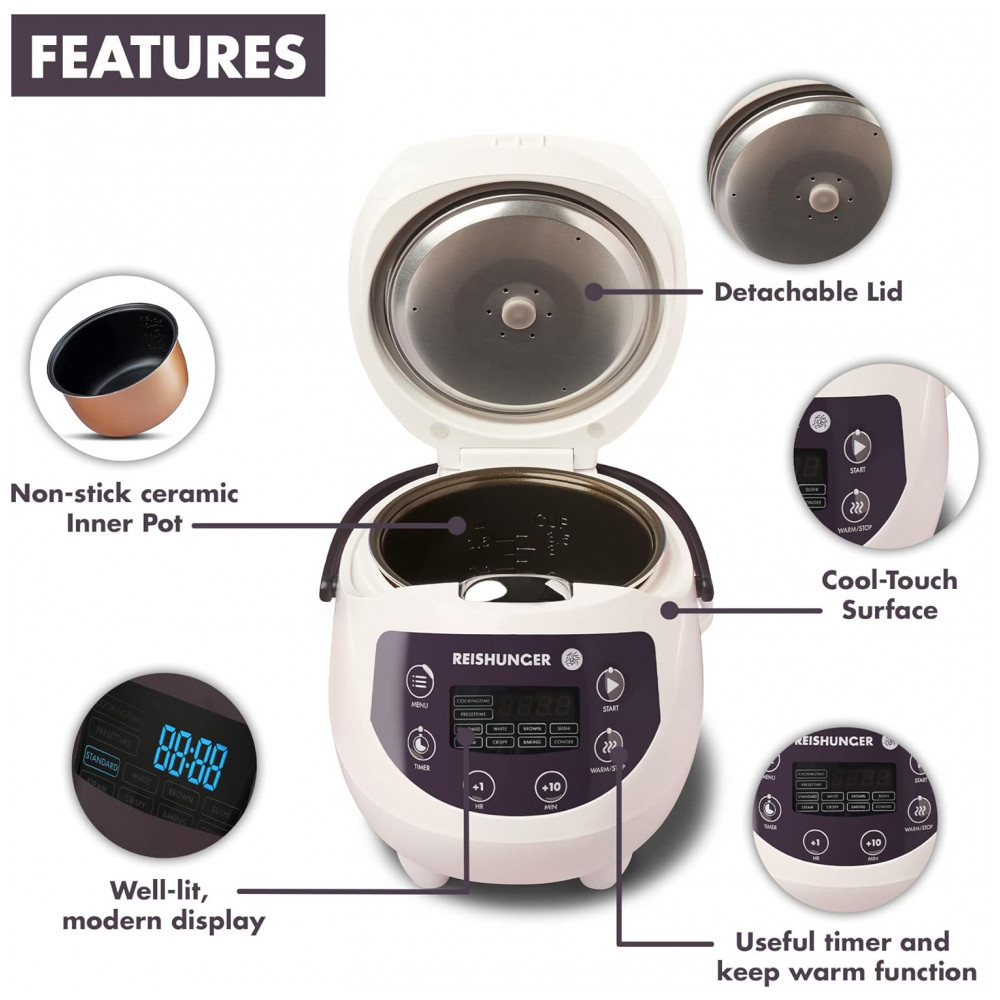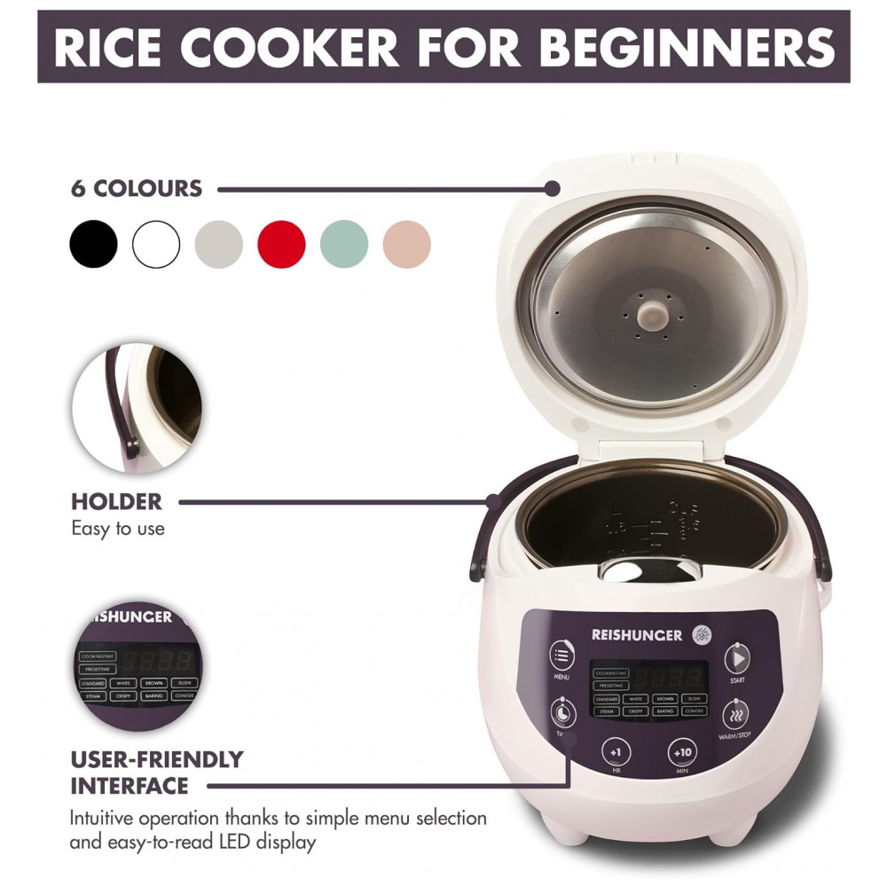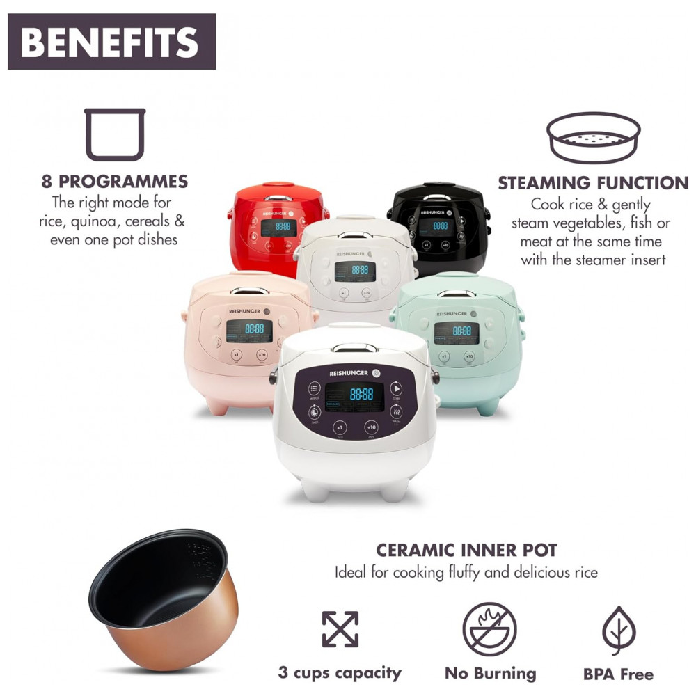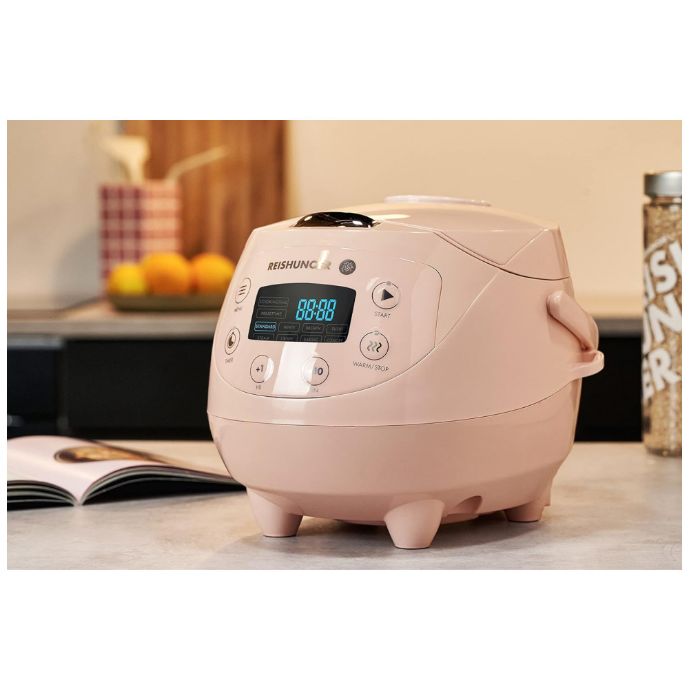 Mini Panela de Arroz Elétrica até 3 Xícaras com 8 Programas 220V 350 W Reishunger Rosa