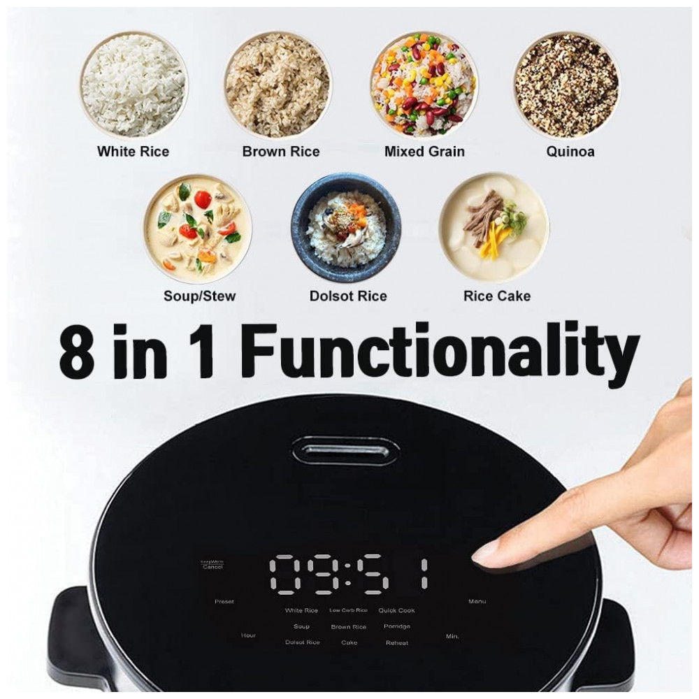 Multifuncionalidade Mais do que uma panela de arroz. Display com Arroz Branco, Arroz Low Carb, Cozimento Rápido, Sopa, Arroz Integral, Bolo, Arroz Dolsot, Reaquecimento no Painel LED.