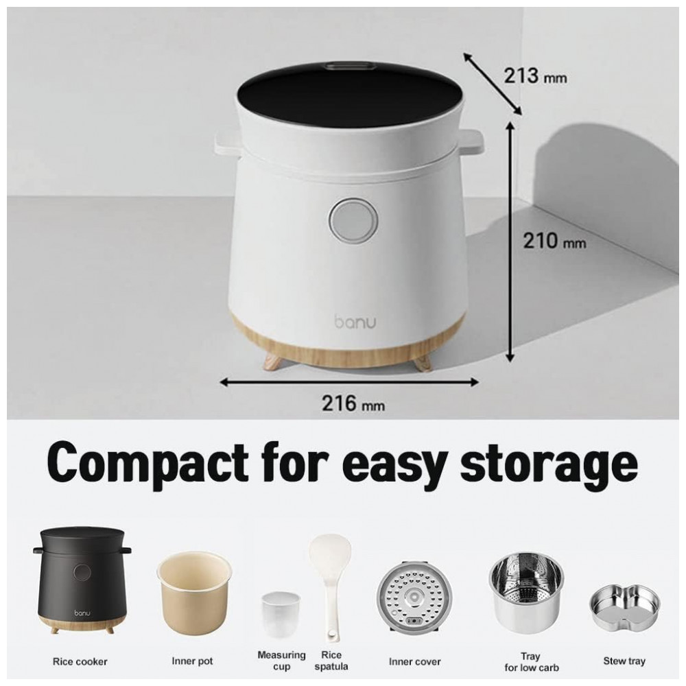 Mini Panela de Arroz Banu Low Carb com sistema de aquecimento Band oferece o melhor sabor do arroz.