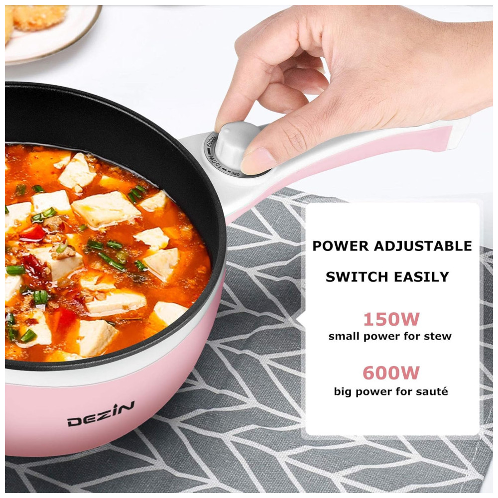 A panela elétrica Dezin Hot Pot oferece versatilidade para cozinhar e saltear com praticidade, utilizando revestimento antiaderente seguro para alimentos, livre de toxinas mesmo em altas temperaturas. Com capacidade de 1,5 litros, é compacta e portátil, perfeita para quem vive em espaços reduzidos ou para uso em viagens. Conta com dois níveis de potência ajustáveis, 250 W para cozimento delicado e 600 W para preparo rápido e eficiente. Equipado com proteção contra superaquecimento e fervura seca, garante segurança total durante o uso.