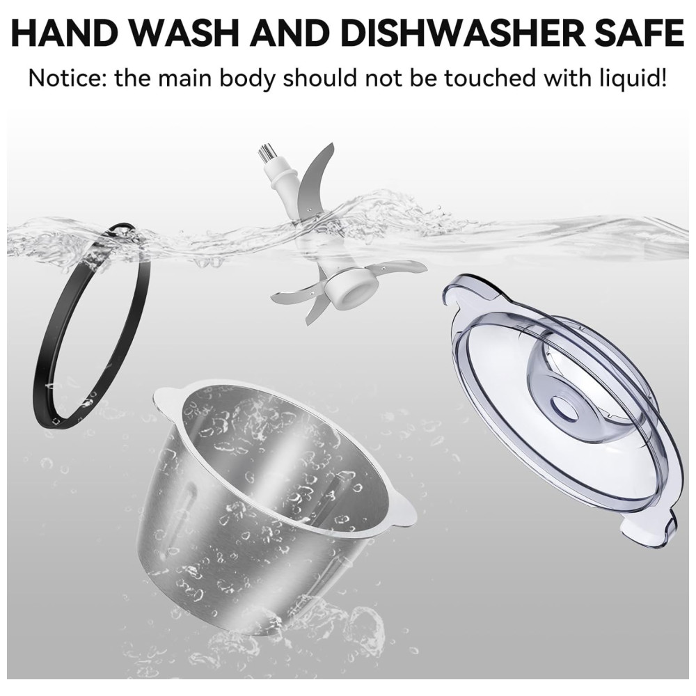Fácil de usar e limpar O picador de alimentos em aço inoxidável resiste a arranhões e corrosão, compacto e leve, tamanho perfeito deste moedor de carne elétrico para uso diário na cozinha, lavável na lava louças