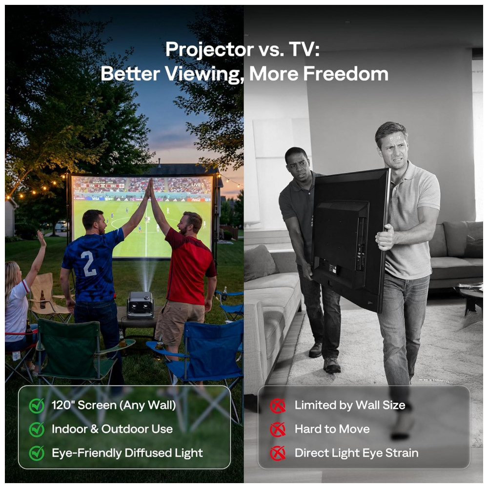 Mini Projetor Aurzen Preto Google TV WiFi Bluetooth Dolby Audio 1080P Boom Mini 120W