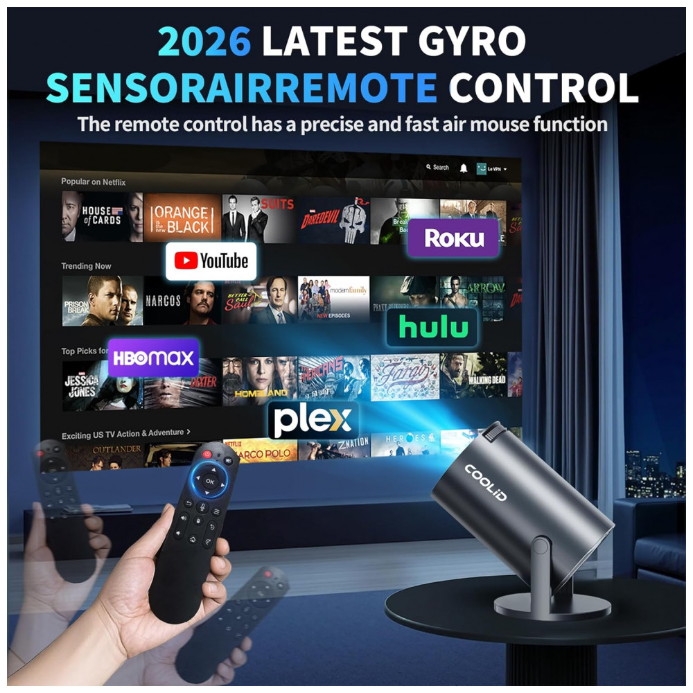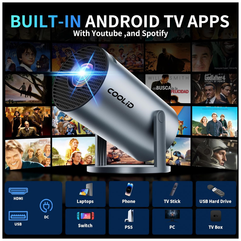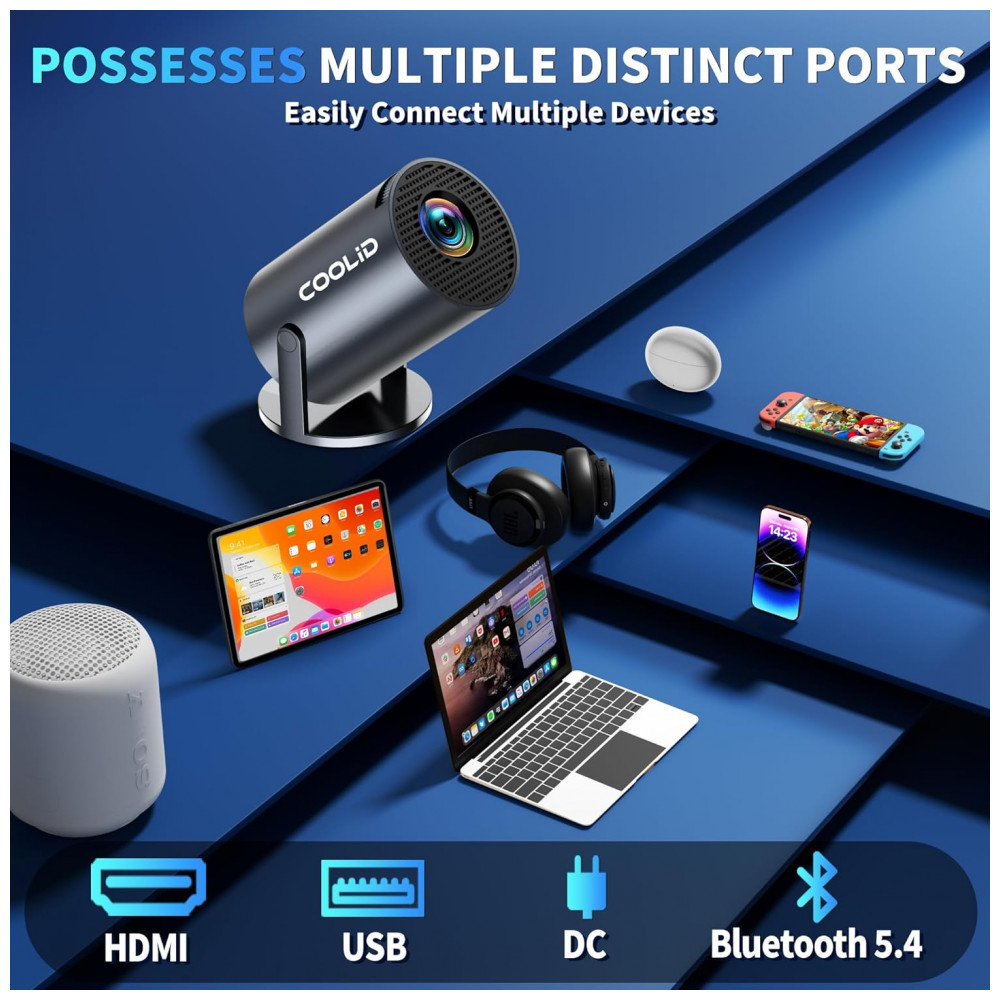 Mini Projetor coolid Cinza Suporte 4K 1080P WiFi 6 Bluetooth 5.4 Rotativo 180° C2