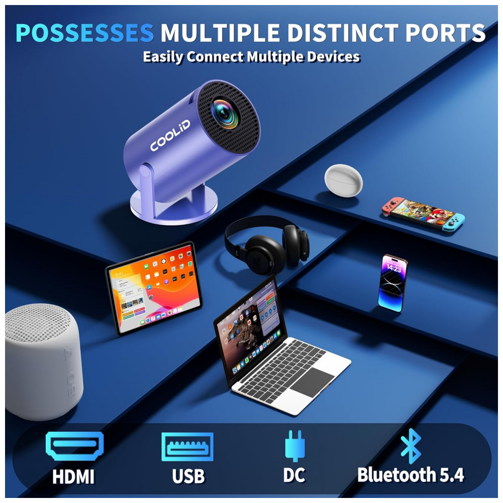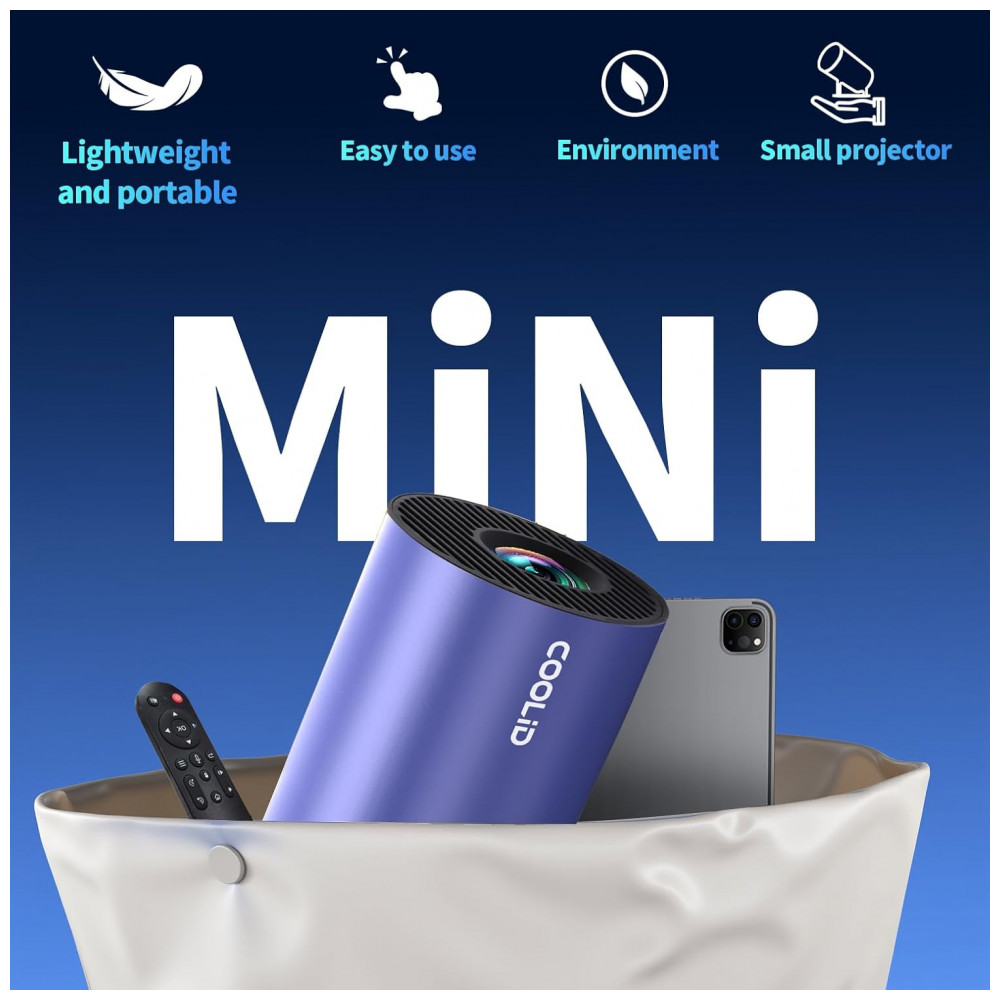 Mini Projetor coolid Roxo Suporte 4K 1080P WiFi 6 Bluetooth 5.4 Rotativo 180° C2
