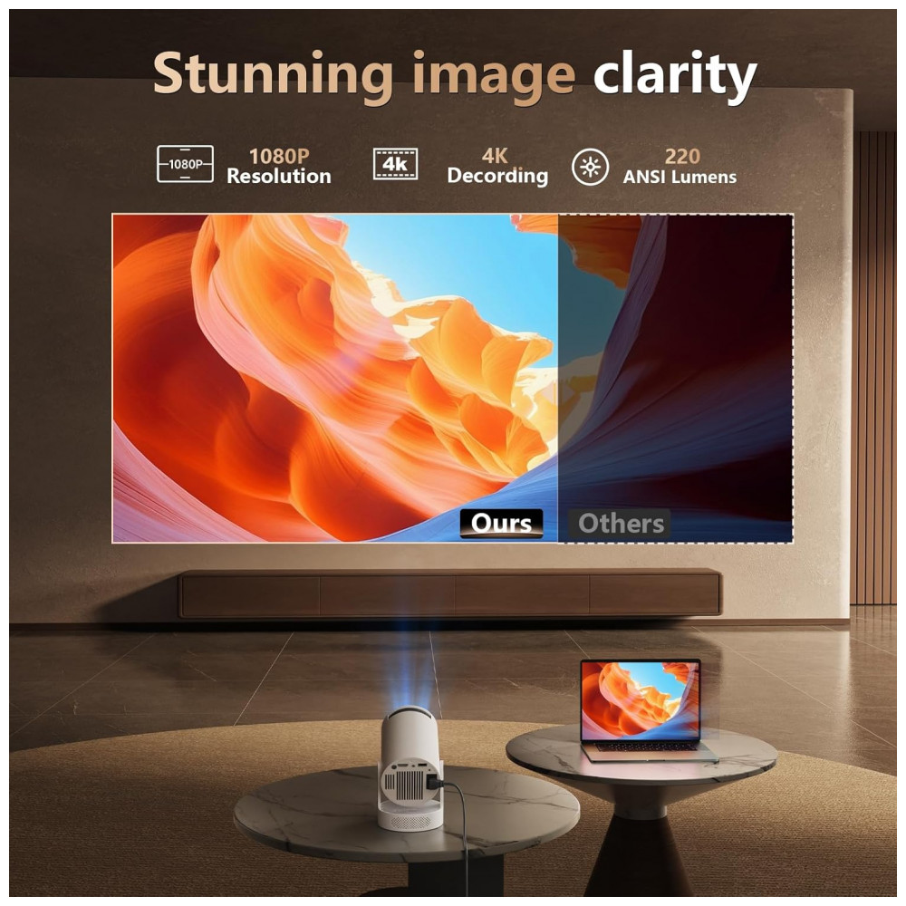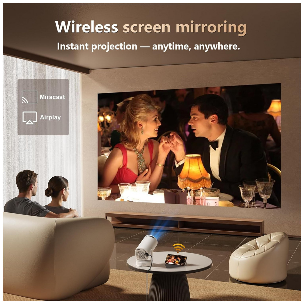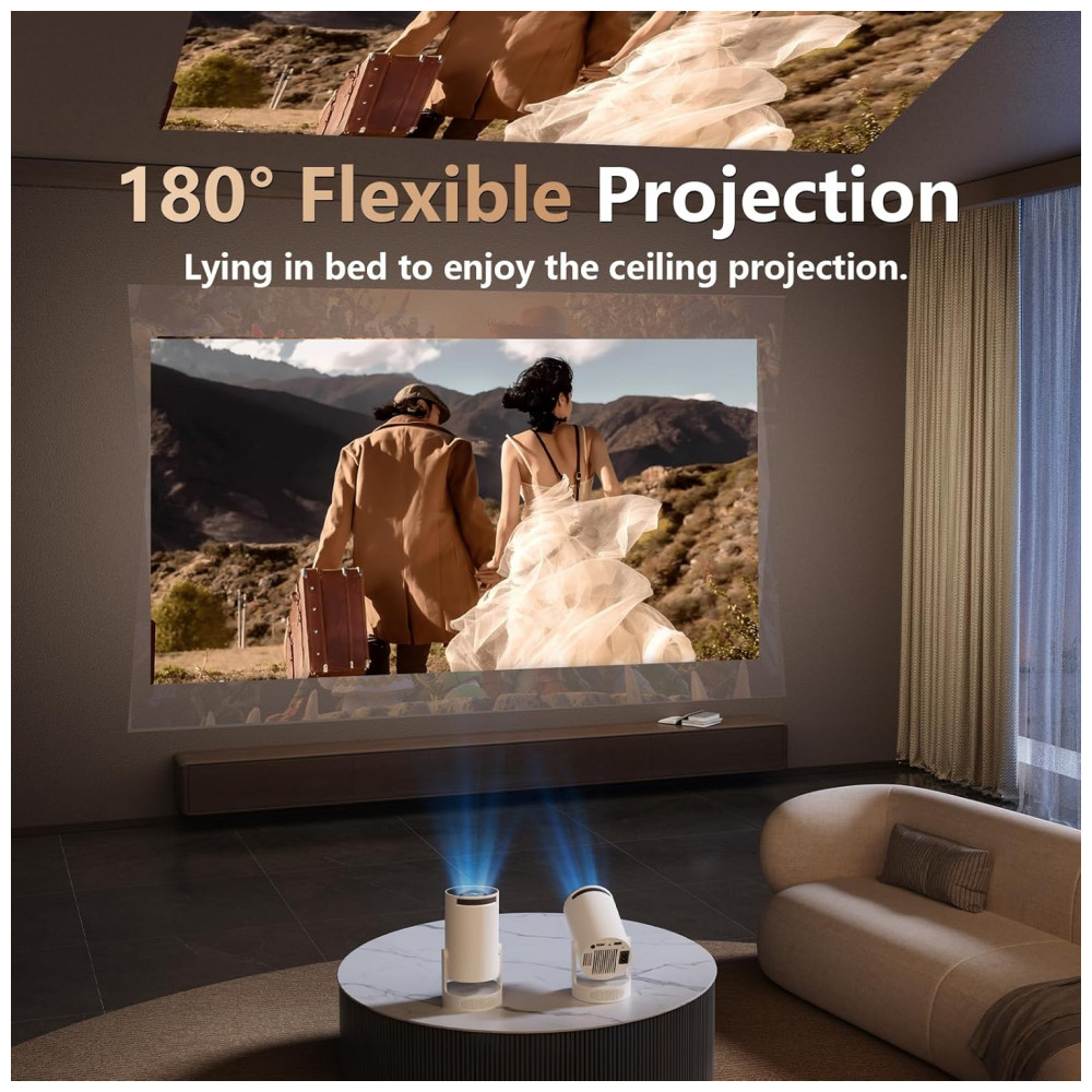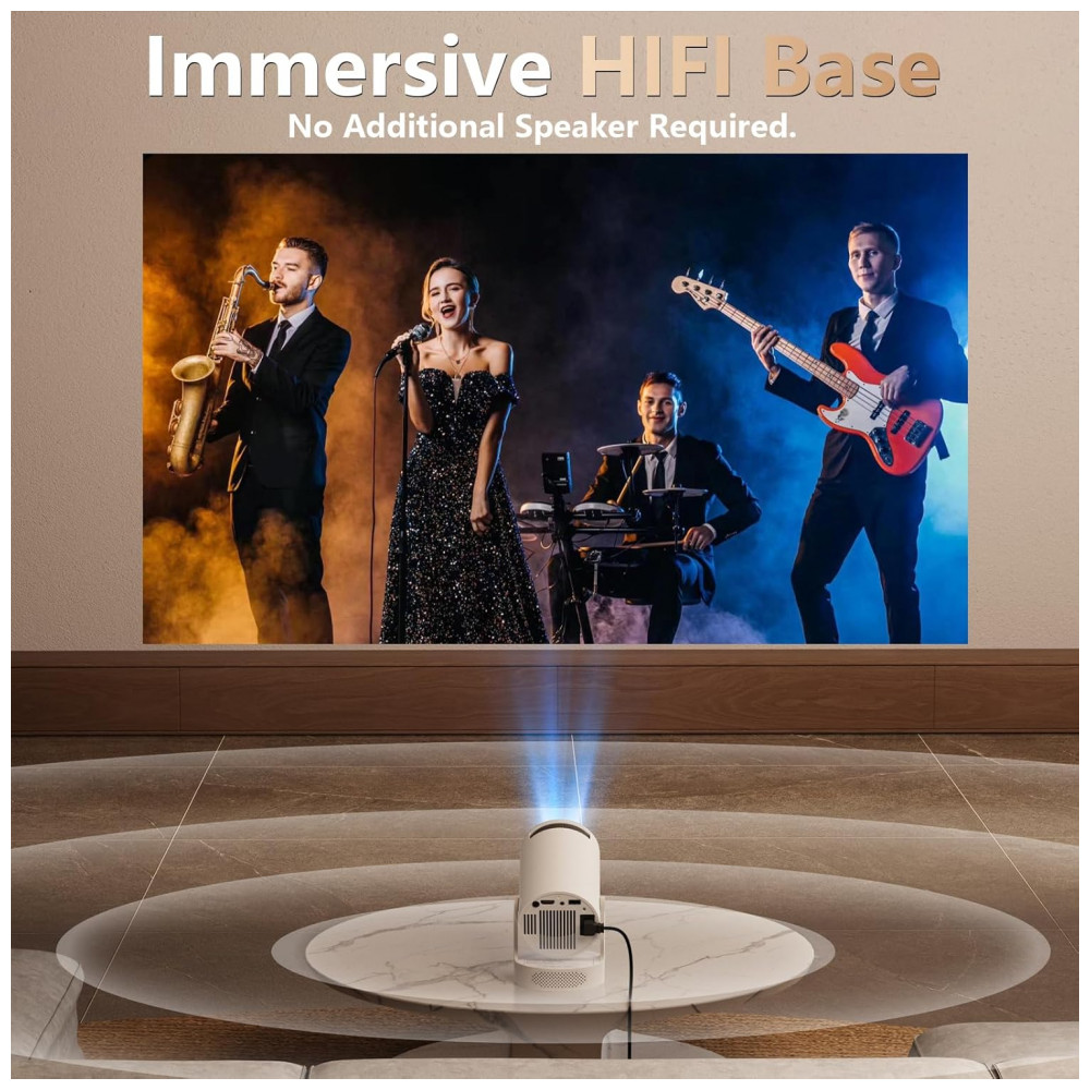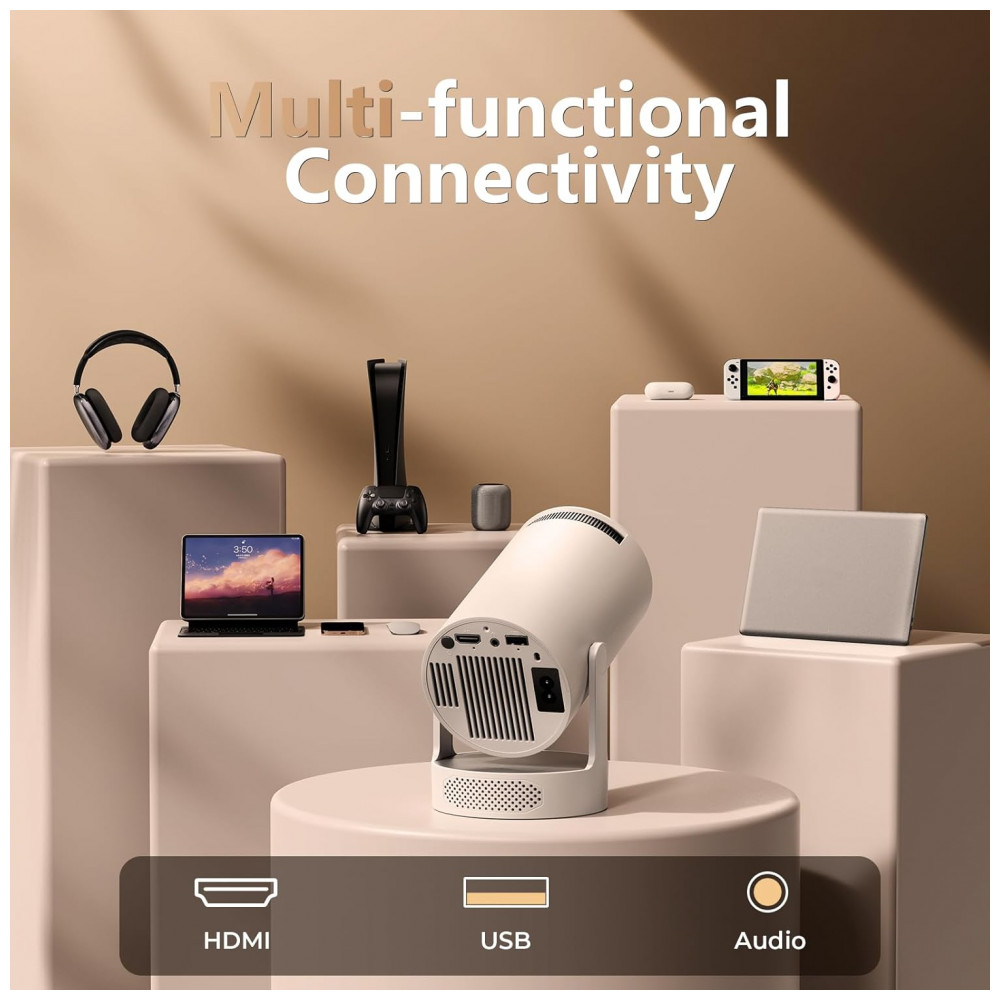 Mini Projetor Trunera Marfim Suporte 4K 1080P WiFi 6 Bluetooth 5.0 Rotativo 180° HY300 PRO HIFI