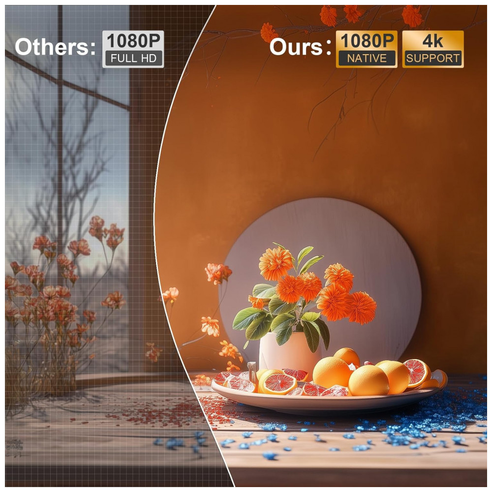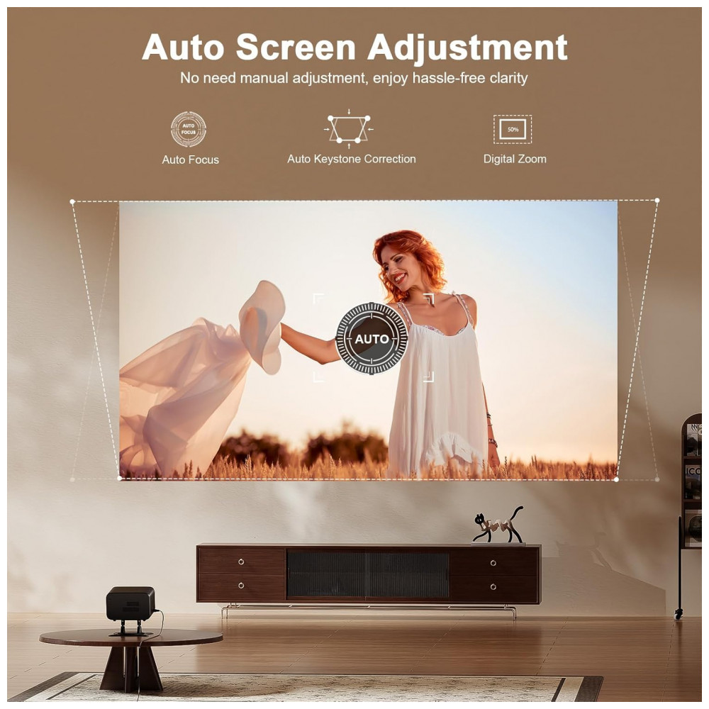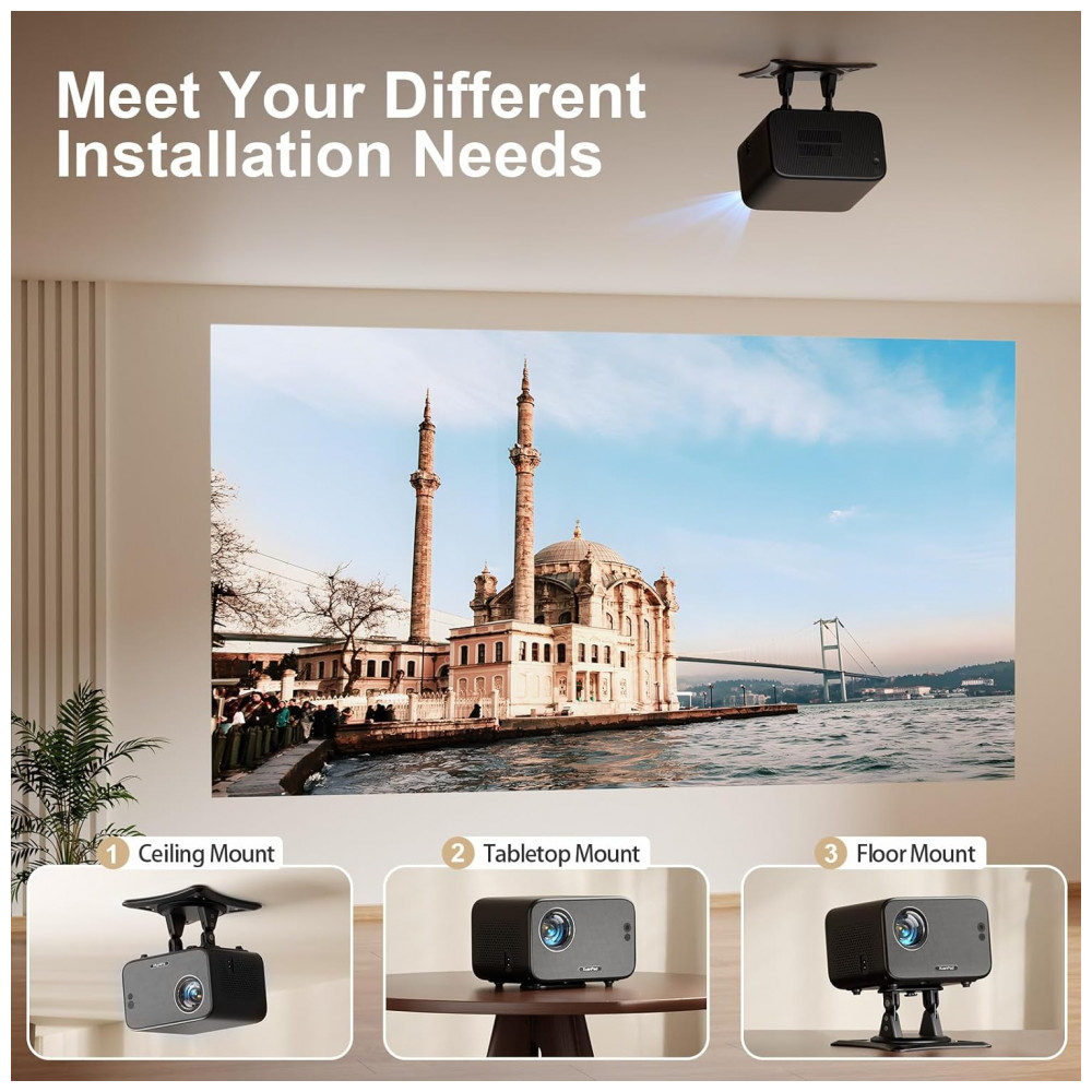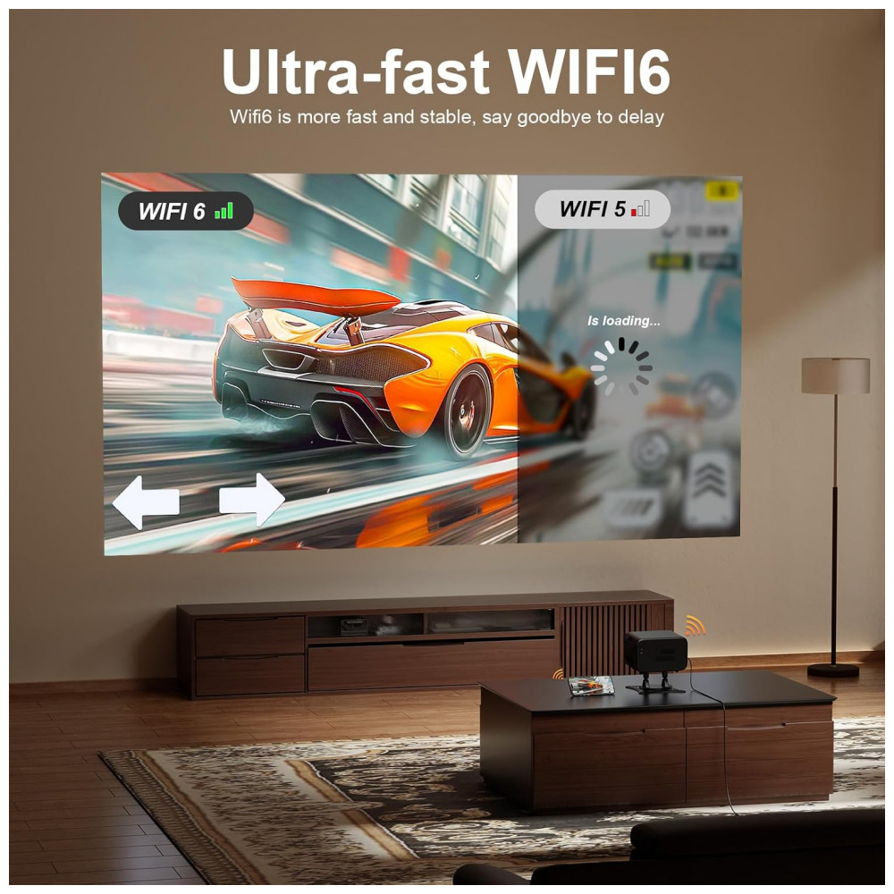 Indicado para home cinema ou uso portátil, possui correção keystone elétrica 6D/4P e rotação flexível para projeção em diferentes superfícies.
