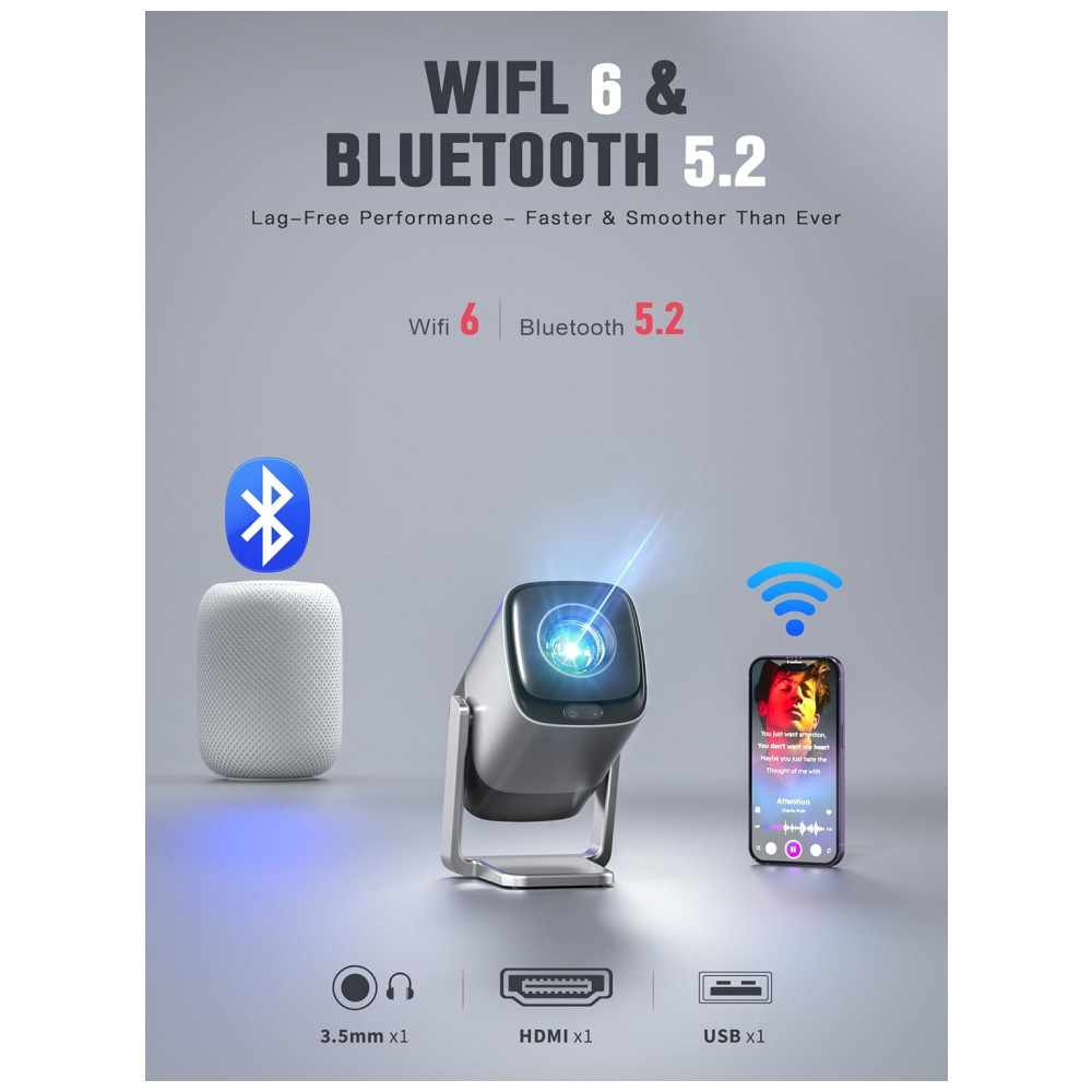 Mini Projetor XuanPad Prata WiFi 6 Bluetooth Suporte 4K 1080P V18
