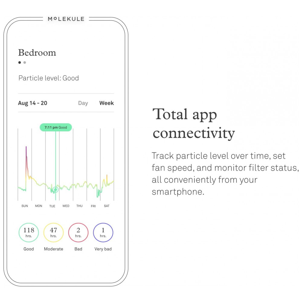 Purificação de ar liberado pelo FDA O Molekule Air Mini é limpo pelo FDA como um dispositivo médico de classe II 510 k para destruir vírus e bactérias.