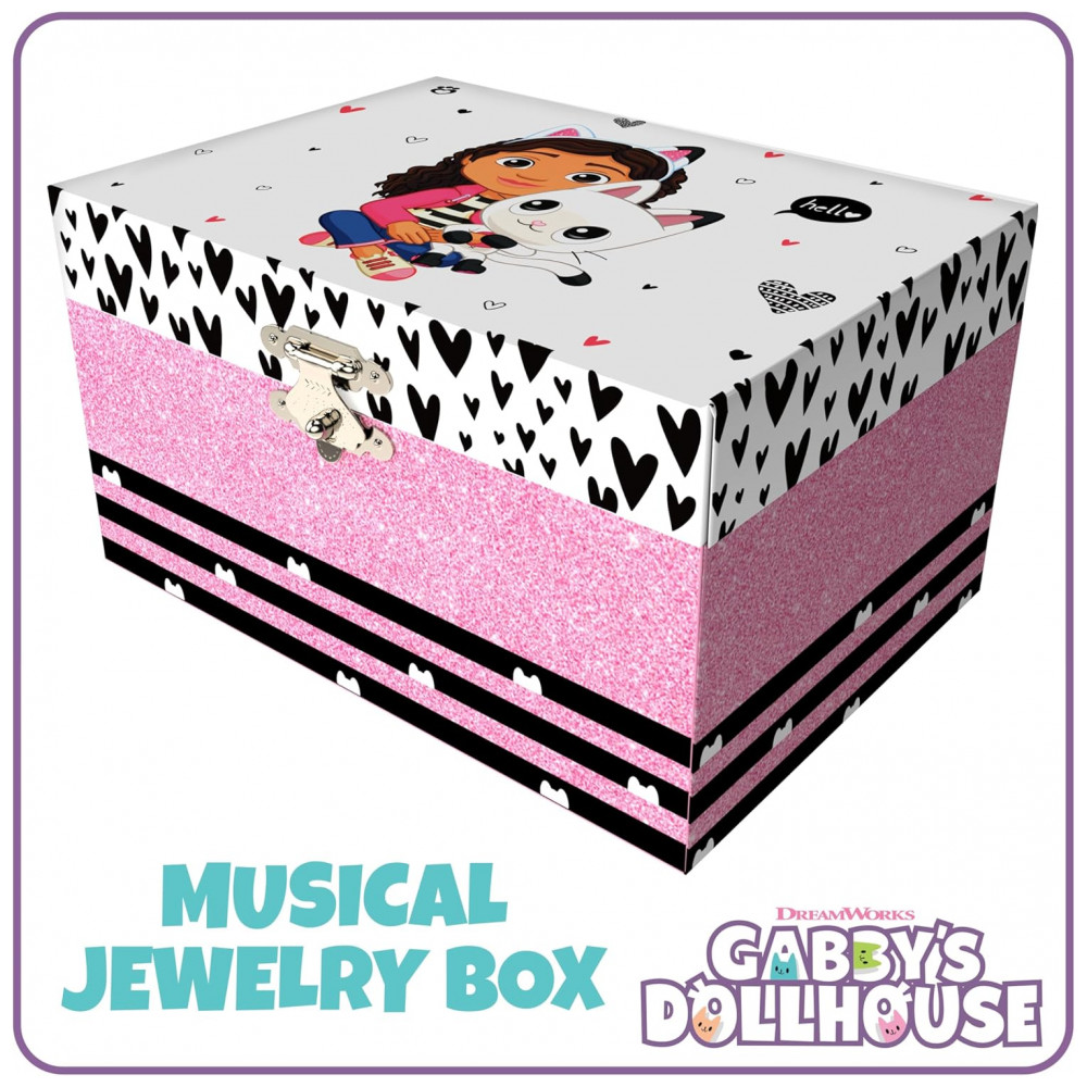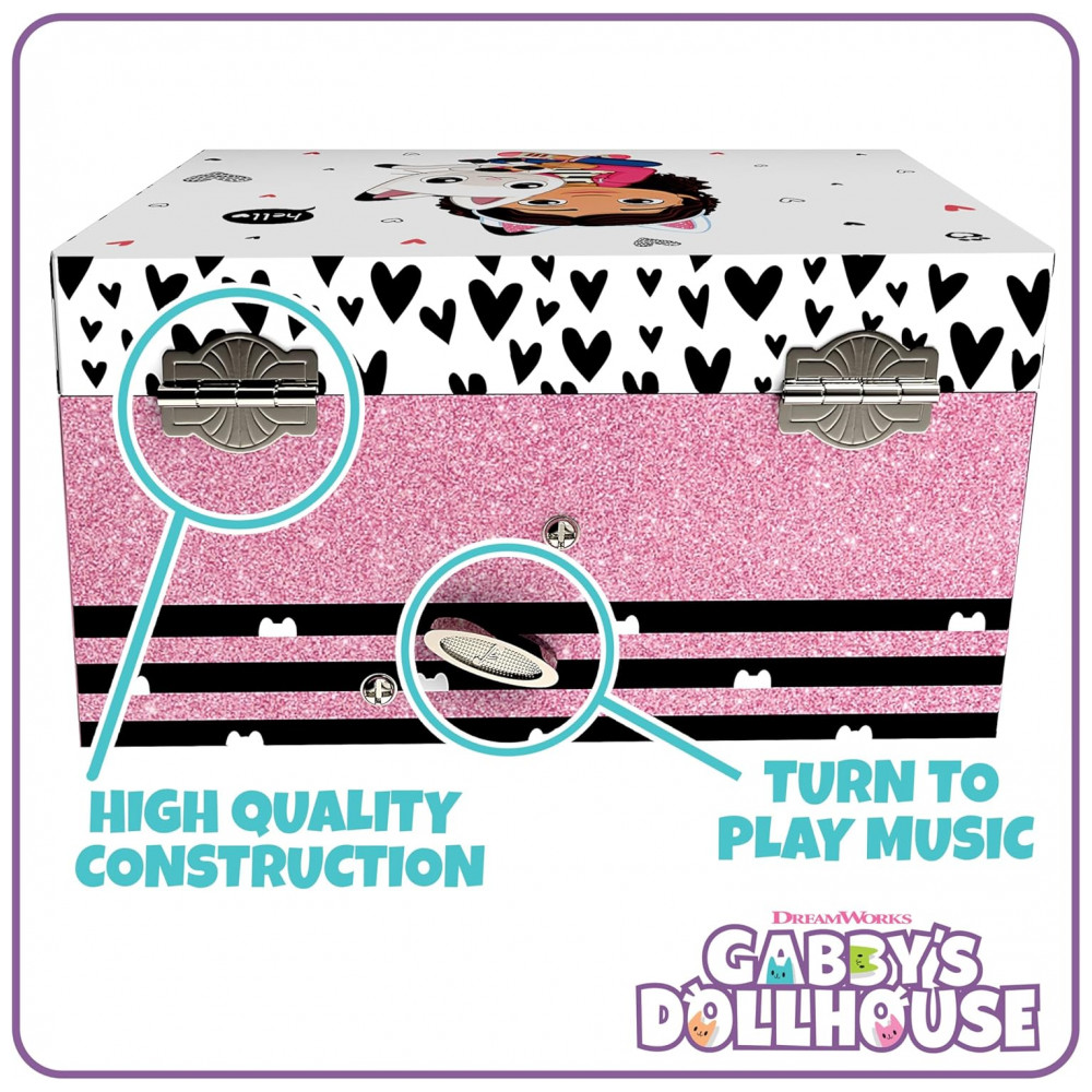 Mini Treasures Caixa de Joias Musical Gabbys Dollhouse para Meninas – Caixa Musical com Figura Giratória da Pandy Paws Brinquedos Gabbys Dollhouse