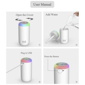 Mini umidificador e umidificador de mesa O design portátil e pequeno é muito fácil de levar para qualquer lugar e super perfeito para a sala do escritório de viagens do quarto do bebê, que hidrata efetivamente a pele seca e ajuda a reduzir a descamação da pele. O umidificador também fornece água para suas plantas pequenas e as mantém úmidas. É um melhor presente para a família e amigos.