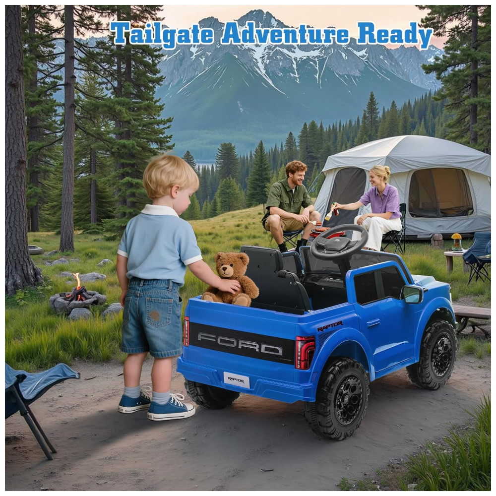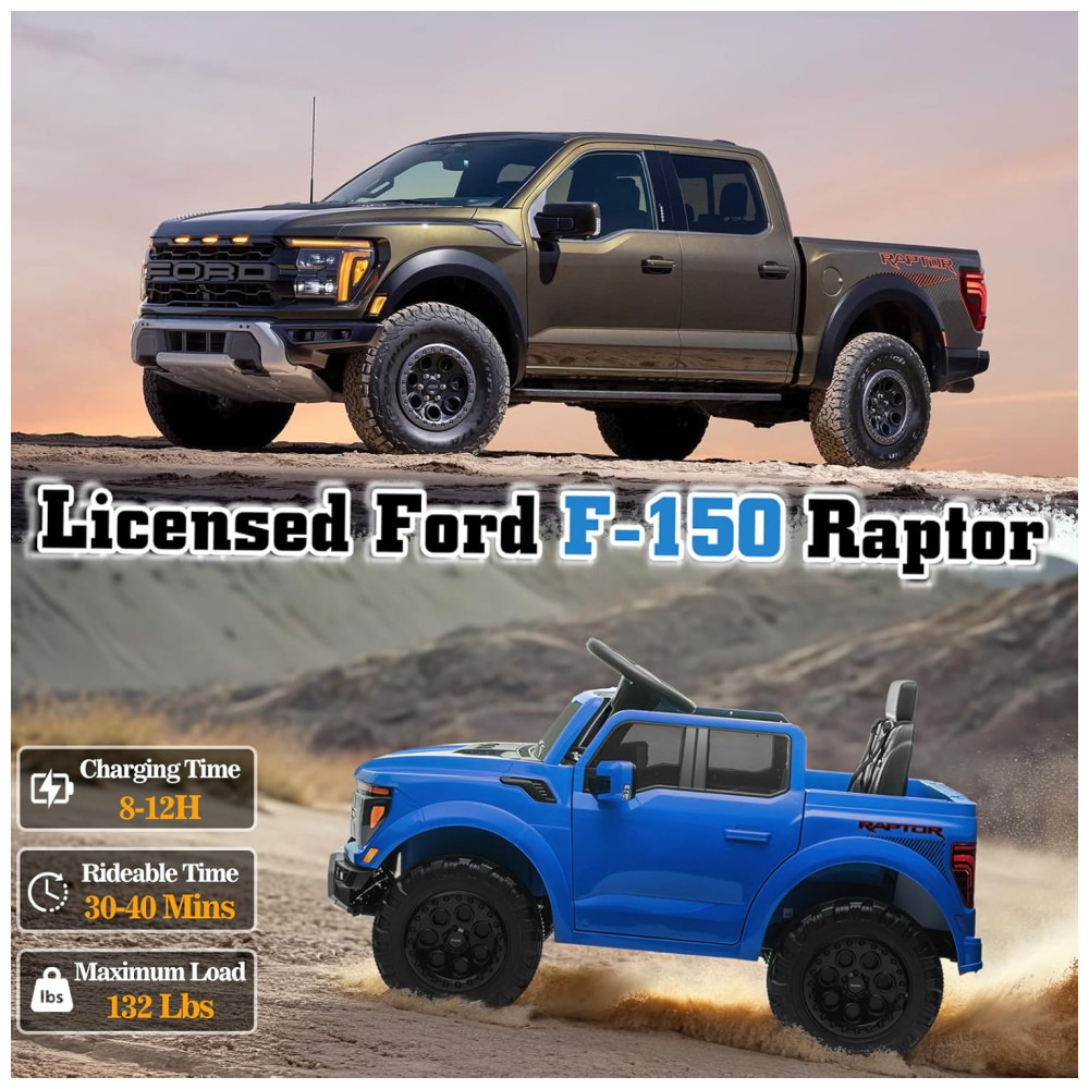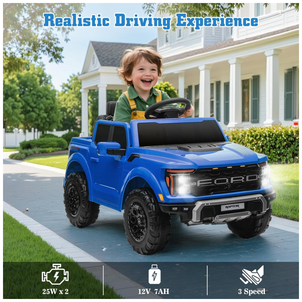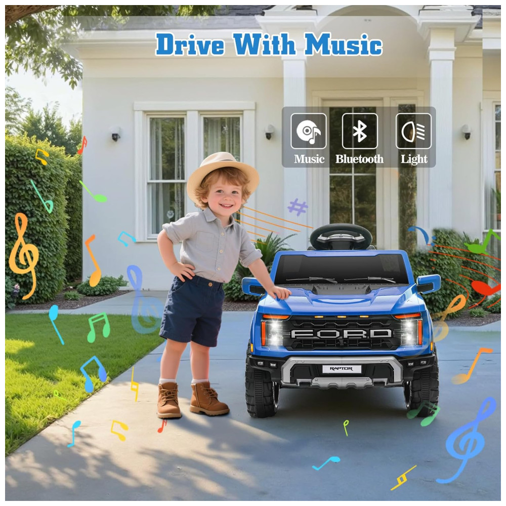 Mini Veículo Elétrico Licenciado Ford F150 Raptor 12V p/ Crianças c/ Controle Remoto Luz de LED Som MP3 Caçamba Cinto 3 Pontos – 120cmSegmart