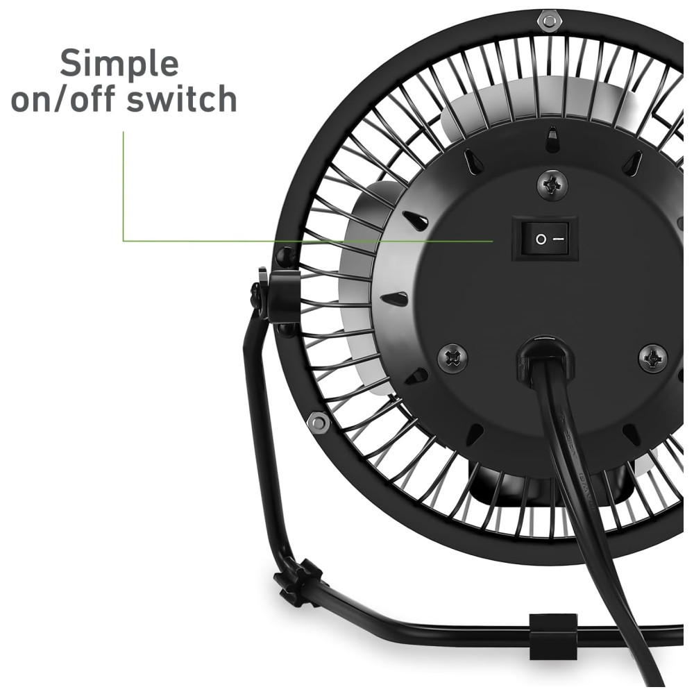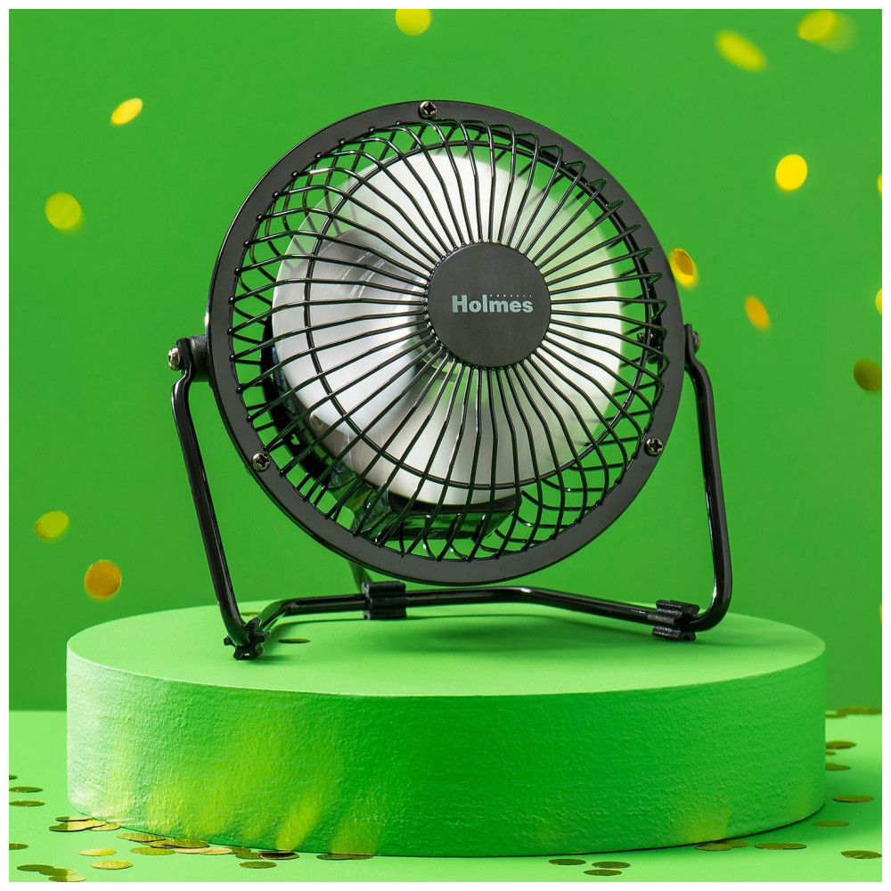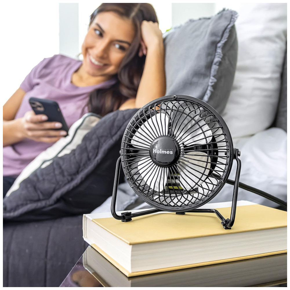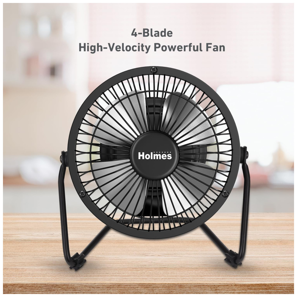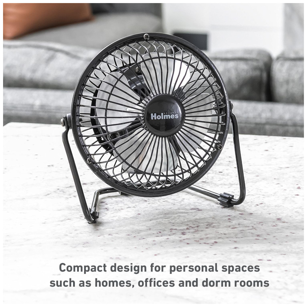 Apresentando o Ventilador de Mesa Pessoal HOLMES de 10 cm! Sinta a brisa refrescante com uma única configuração de velocidade, 4 pás e operação simples com um interruptor manual liga/desliga.