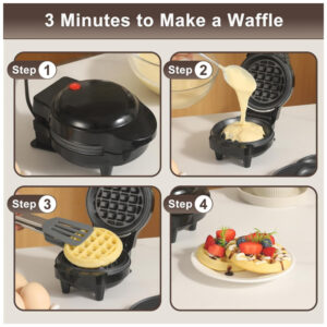 Este mini fabricante de waffles 3 em 1 é equipado com 6 placas, sendo waffle tradicional, waffle em forma de coração, donut, duas de cada tipo de placa, para atender às suas necessidades de preparar diferentes alimentos, permitindo que você troque a placa do fabricante de waffles conforme desejar, com operação simples. Em apenas 3 minutos, é possível fazer um waffle perfeito. A placa deste fabricante de waffles para café da manhã, quando aquecida uniformemente, permite que você prepare rapidamente um waffle em cerca de 3 minutos, adicionando diversão para sua família e desfrutando de alimentos deliciosos a qualquer momento. Controle Automático de Temperatura e Indicador de Pré-aquecimento Design inteligente de controle de temperatura, quando a temperatura da placa está baixa, ela aquecerá automaticamente, e a luz indicadora de pré-aquecimento na parte superior da tampa lembrará quando começar a cozinhar. Fácil de Usar e Armazenar Com este pequeno ferro de waffle, qualquer um pode se tornar um especialista em fazer waffles, sem instalação adicional necessária, basta ligar e usar imediatamente, muito simples e conveniente. O design pequeno e fofo faz com que ocupe quase nenhum espaço, sendo ideal para cozinha, apartamento, motorhome e outros cenários, permitindo fácil armazenamento. Fabricante de Waffle Antiaderente para Limpeza Fácil Você pode fazer um delicioso waffle em minutos em uma placa de cozimento antiaderente. Após cozinhar, a limpeza é fácil devido aos materiais de alta qualidade e antiaderentes, basta limpar a superfície das placas superior e inferior com um pano úmido.