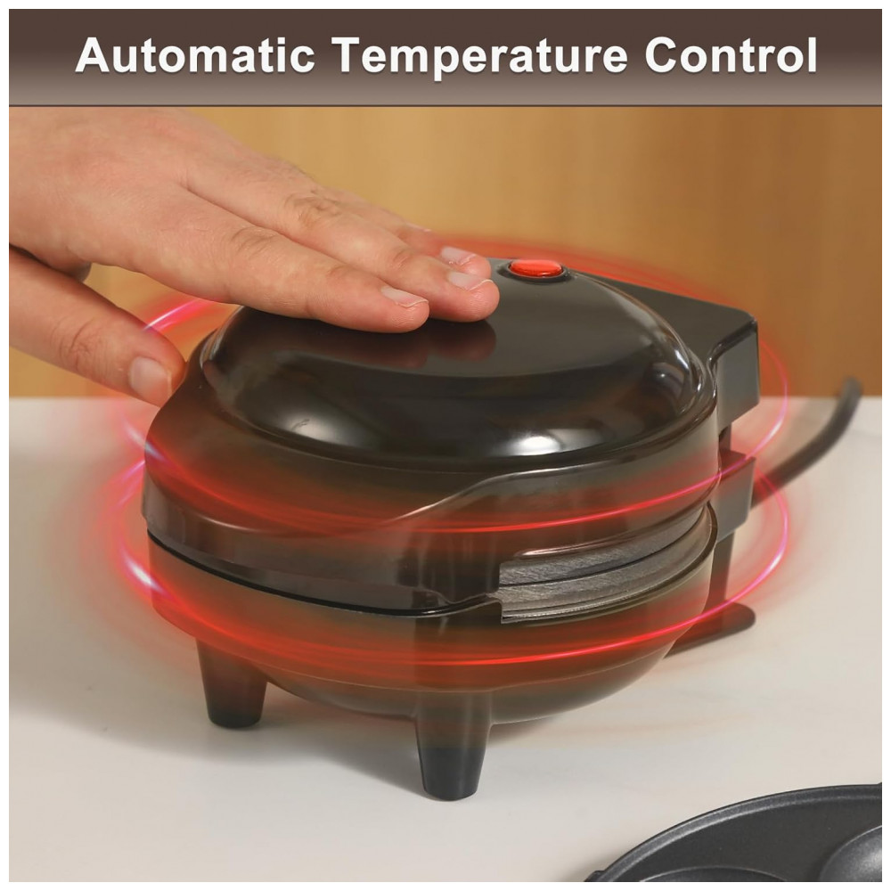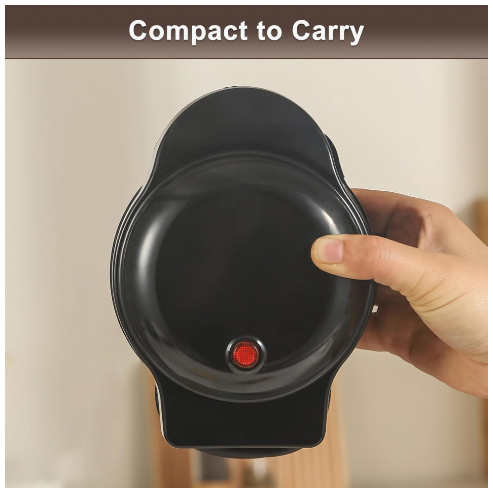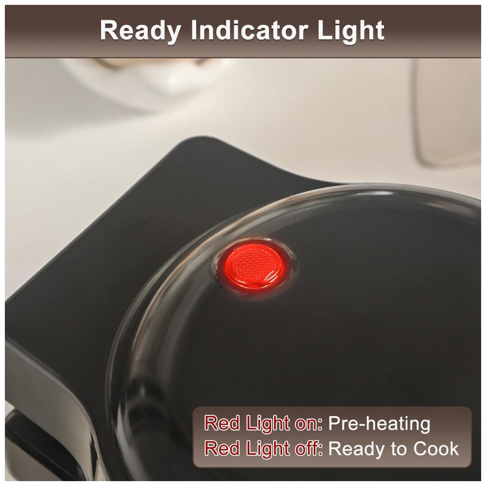 Este Mini Waffle Maker 4 em 1 é perfeito para preparar uma variedade de alimentos, com 8 placas diferentes incluindo waffle tradicional, coração, donut, panqueca, duas de cada tipo. Em apenas 3 minutos, você pode saborear um delicioso waffle perfeito, graças ao controle automático de temperatura e indicador de pré-aquecimento. Fácil de usar e armazenar, o design compacto do ferro de waffle não ocupa espaço e é ideal para qualquer cozinha. Com uma chapa de cozimento antiaderente de 4,5 polegadas, a limpeza é rápida e simples.
