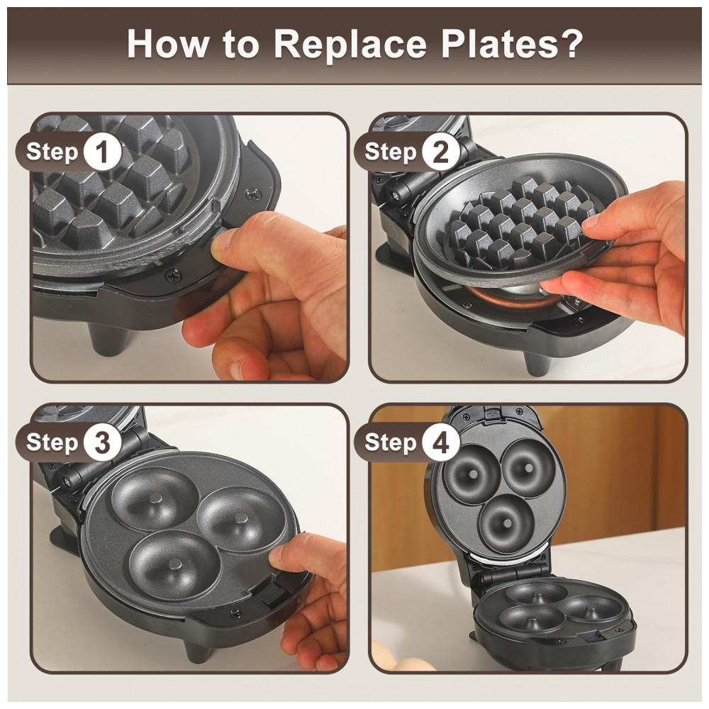 Mini Waffles Maker com 8 Placas Removíveis 4 em 1 Mini Waffle Maker Coração Panqueca Donut Ferro de Waffle AntiaderenteUVFAST
