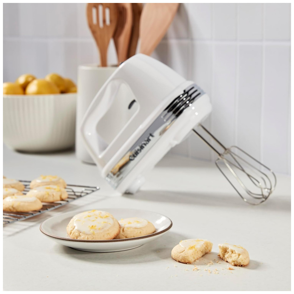 Inclui batedores, batedor de cozinha, ganchos de massa, espátula e livro de instruções , receitas
