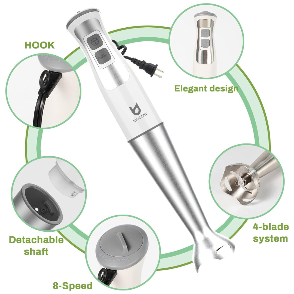 Mixer com 8 Velocidades e Acessórios Aço Inoxidável 250W 110v UTALENT U 3373 Branco
