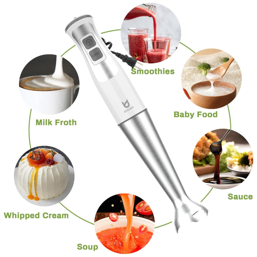 LIQUIDIFICADOR DE ALTA EFICIÊNCIA. Varinha de mistura grossa de aço inoxidável com sistema de 4 lâminas. Torne a mistura de alimentos mais eficiente, uniforme e suave