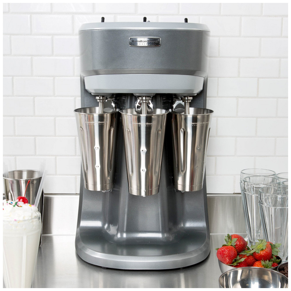 O mixer de bebidas Hamilton Beach HMD400R-CE é um equipamento com três spindles para preparo simultâneo de milkshakes e misturas em lanchonetes ou sorveterias. Cada spindle possui motor de 0,45 cv com partida/parada automática por inserção/retirada do copo, construção em fundição pesada e três velocidades com controle por pulse de acionamento por ponta de dedo.