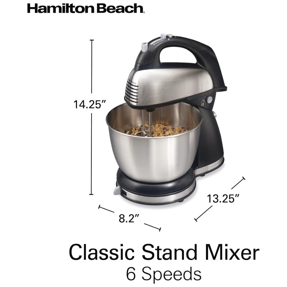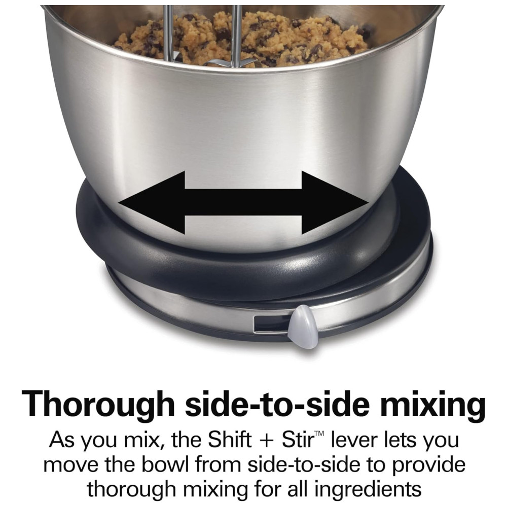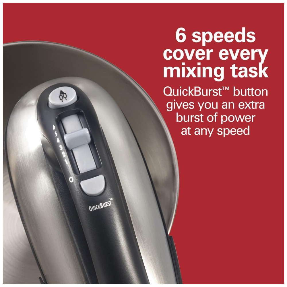 Mixer de Mão e Suporte Clássico Hamilton Beach 4 Litros 6 Velocidades com QuickBurst Descanso de Tigela 290 Watts de Potência Máxima Preto e Inox