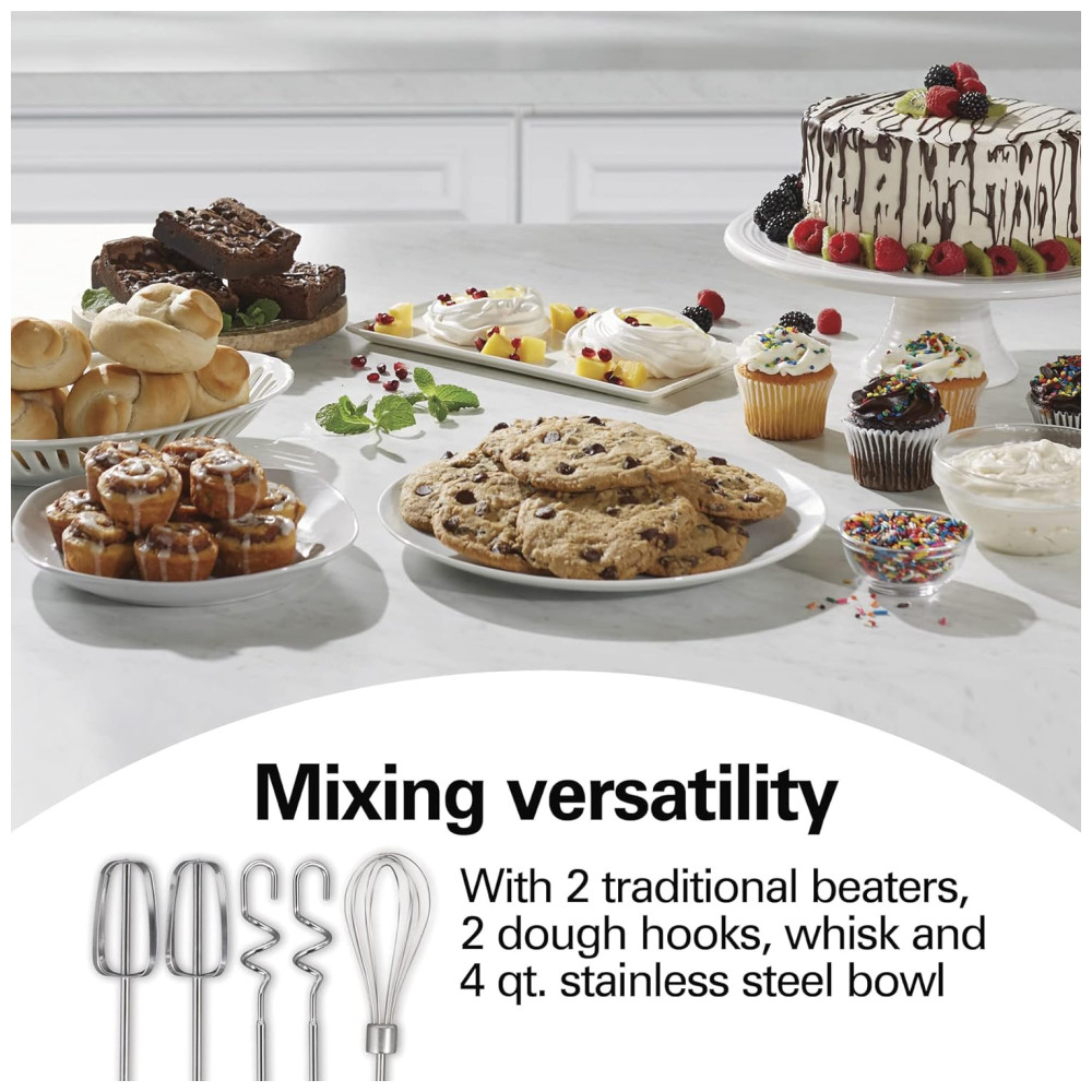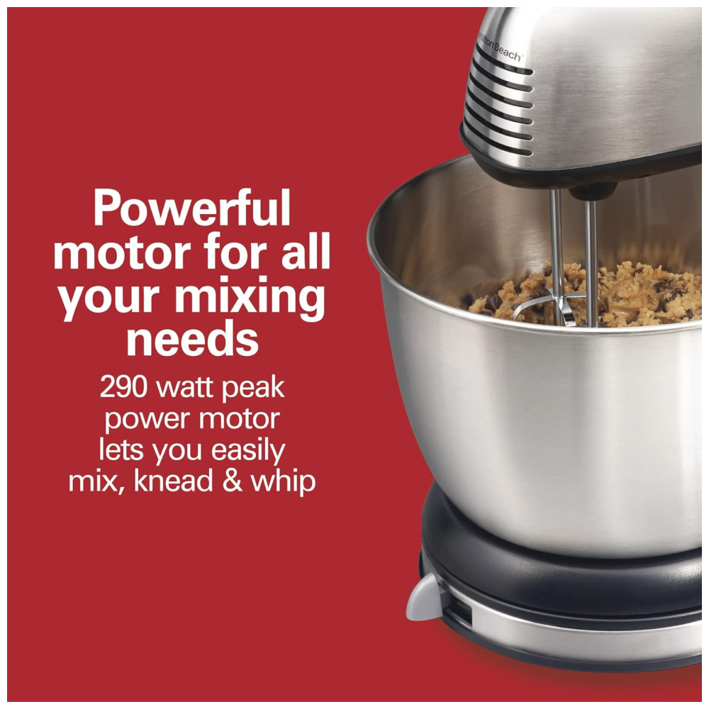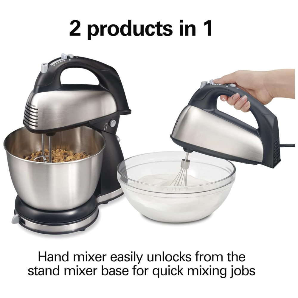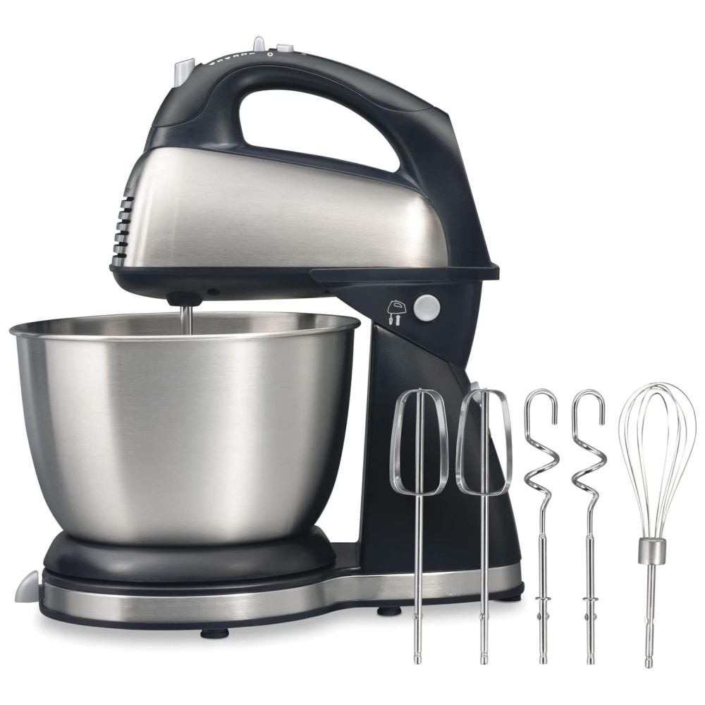 Mixer de Mão e Suporte Clássico Hamilton Beach 4 Litros 6 Velocidades com QuickBurst Descanso de Tigela 290 Watts de Potência Máxima Preto e Inox