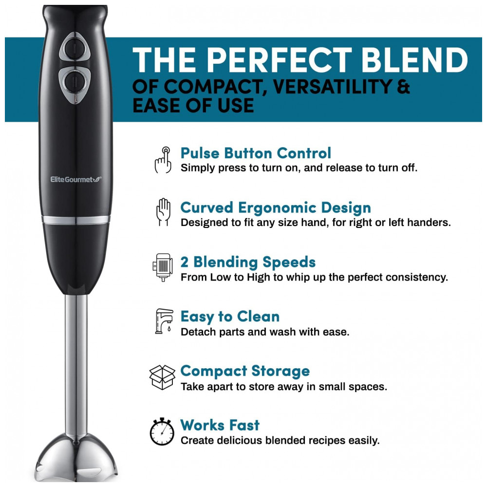Mixer Elétrico com 2 Velocidades e Lâminas de Aço Inoxidável 110V 500W Elite Gourmet EHB1015 Preto
