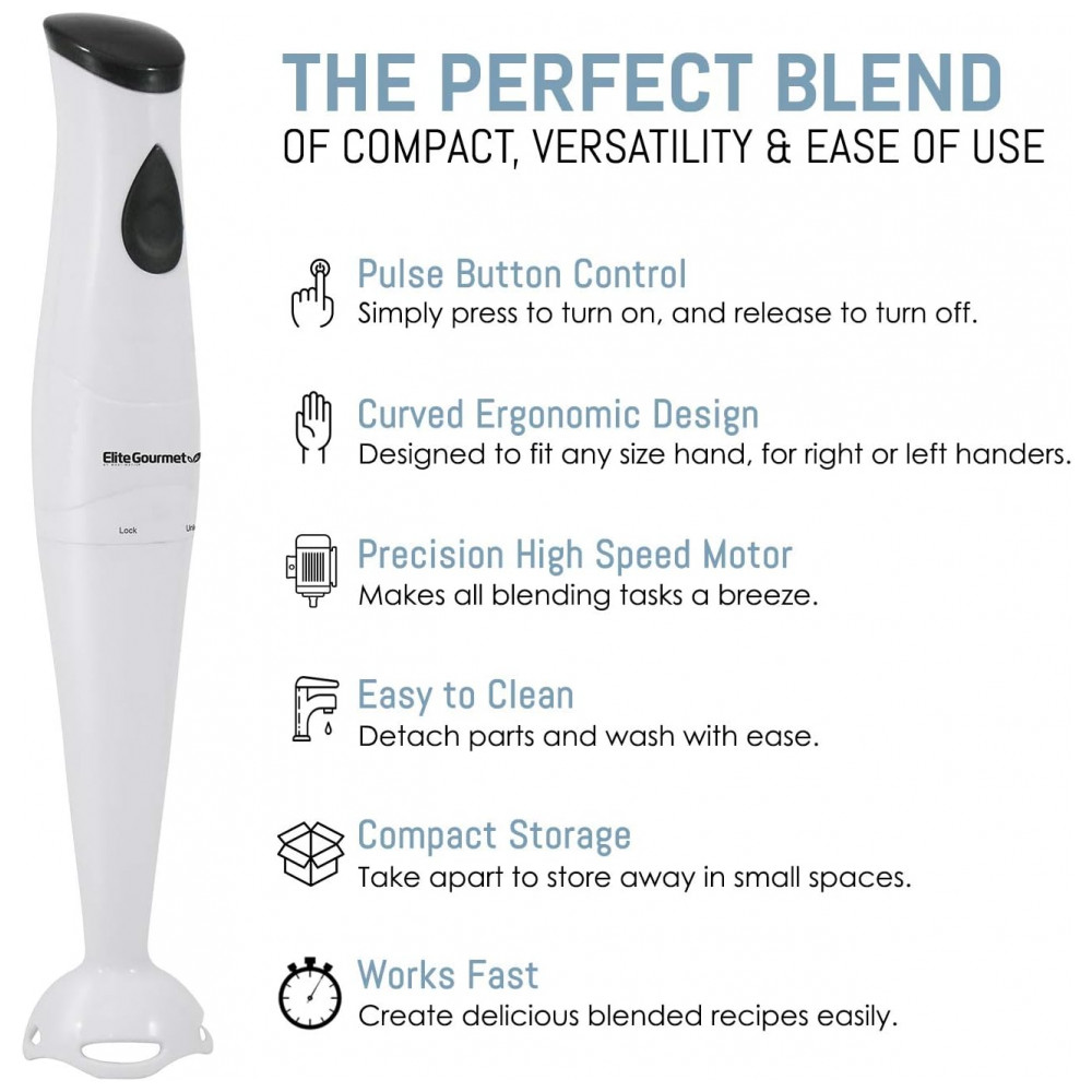 Mixer Elétrico com Controle de 1 Toque e Bastão Removível 110V 150W Elite Gourmet Branco