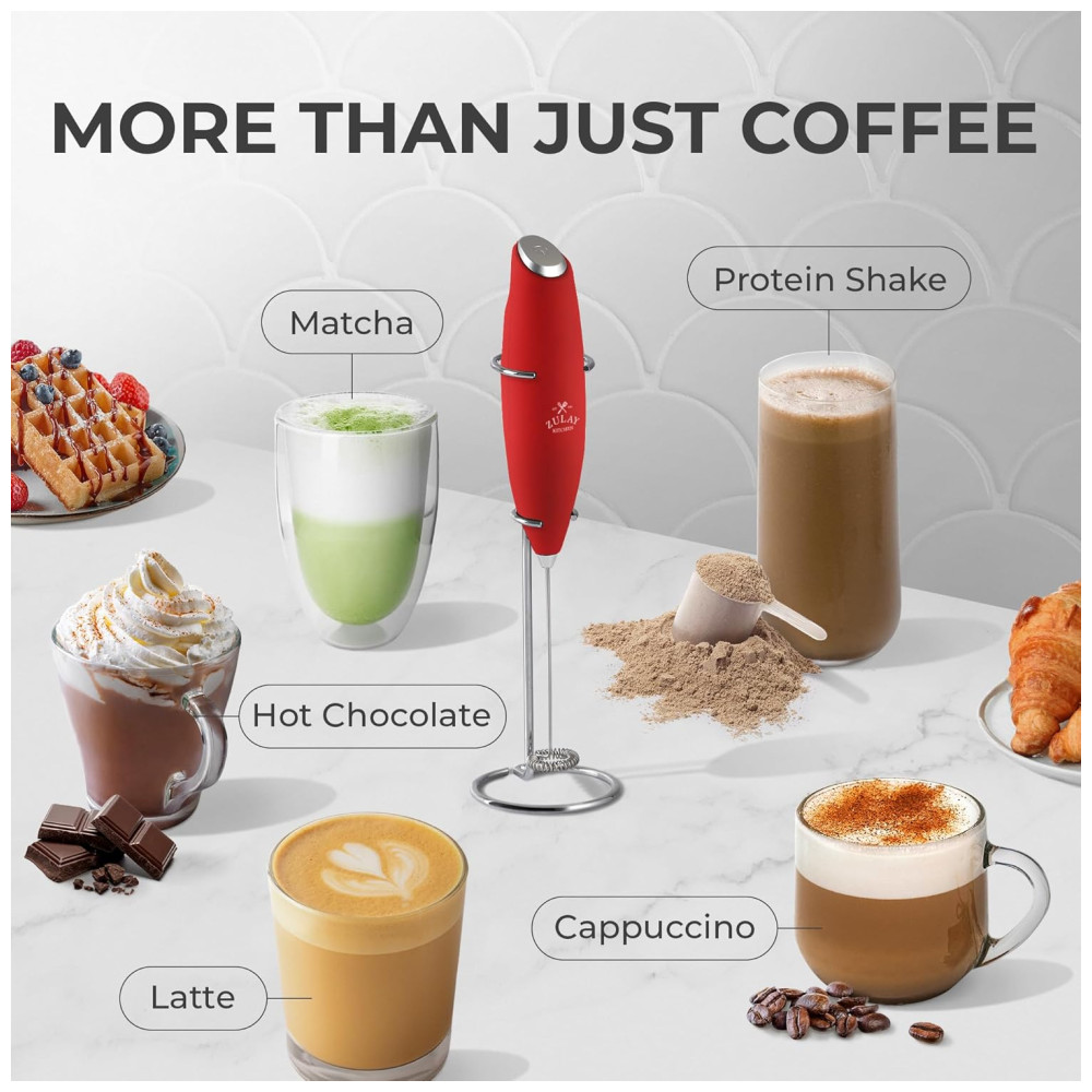 Qualidade comprovada e confiável usamos apenas materiais premium. A construção durará, apoiada por nossa garantia Zulay de não enferrujar ou quebrar, nunca. Nosso bocal pequeno e eficiente funciona com todos os tipos de leite meio a meio, creme, soja, amêndoa, caju, avelã, leite integral e outros laticínios, como manteiga ou creme.