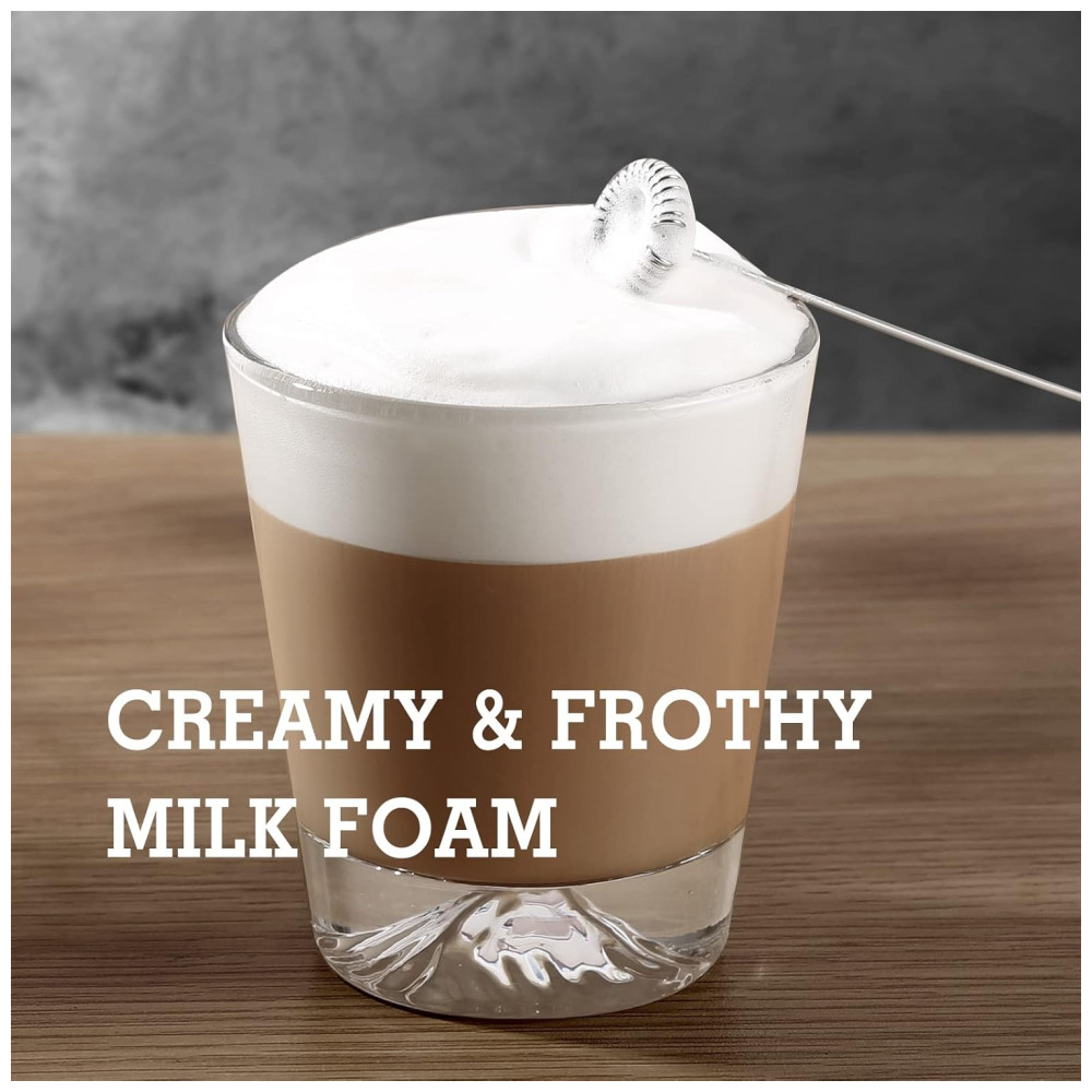 Multifuncional não só cria espuma de leite para cafés, cappuccinos e macchiatos, mas também é adequado para fazer chocolate quente e frio, milkshakes, chá matcha, bebidas mistas e até mesmo para bater ovo e molhos