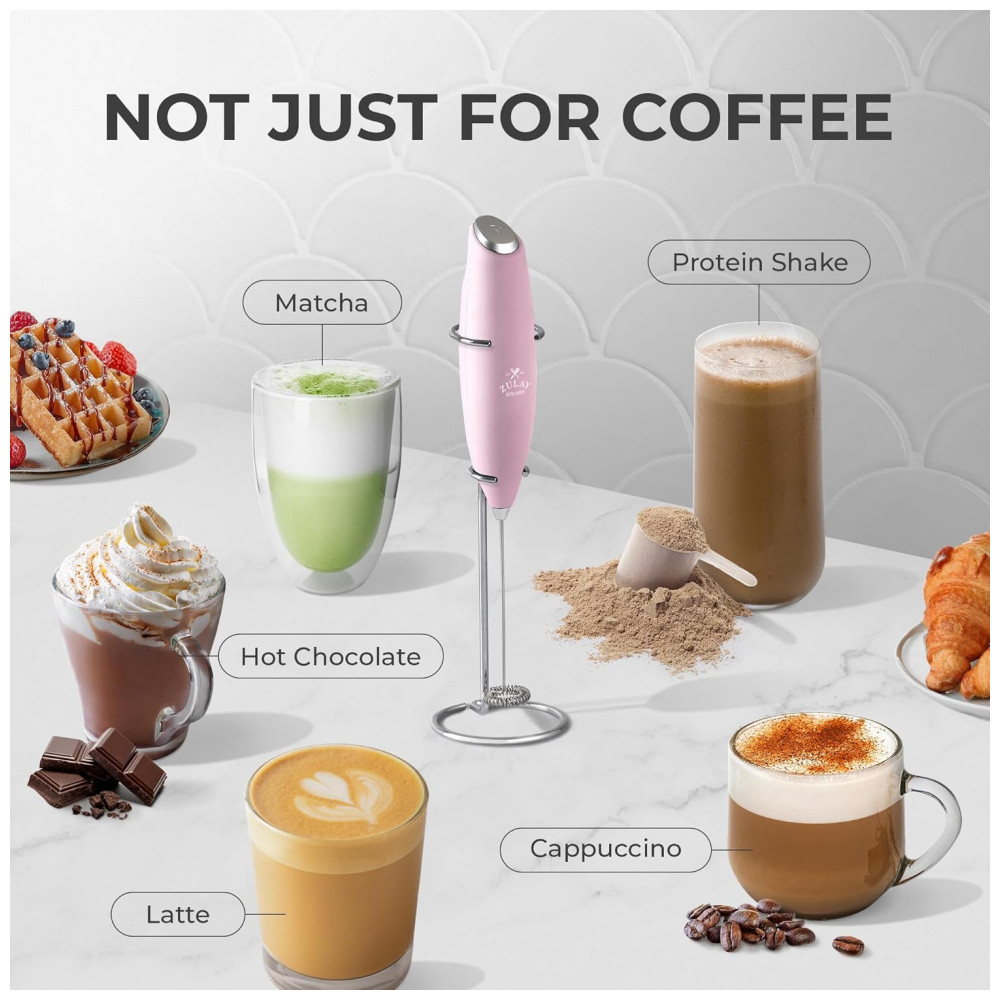 Mixer Espumador de Leite á Bateria Aço Inoxidável ZULAY KITCHEN Milk Boss Cotton Candy Rosa