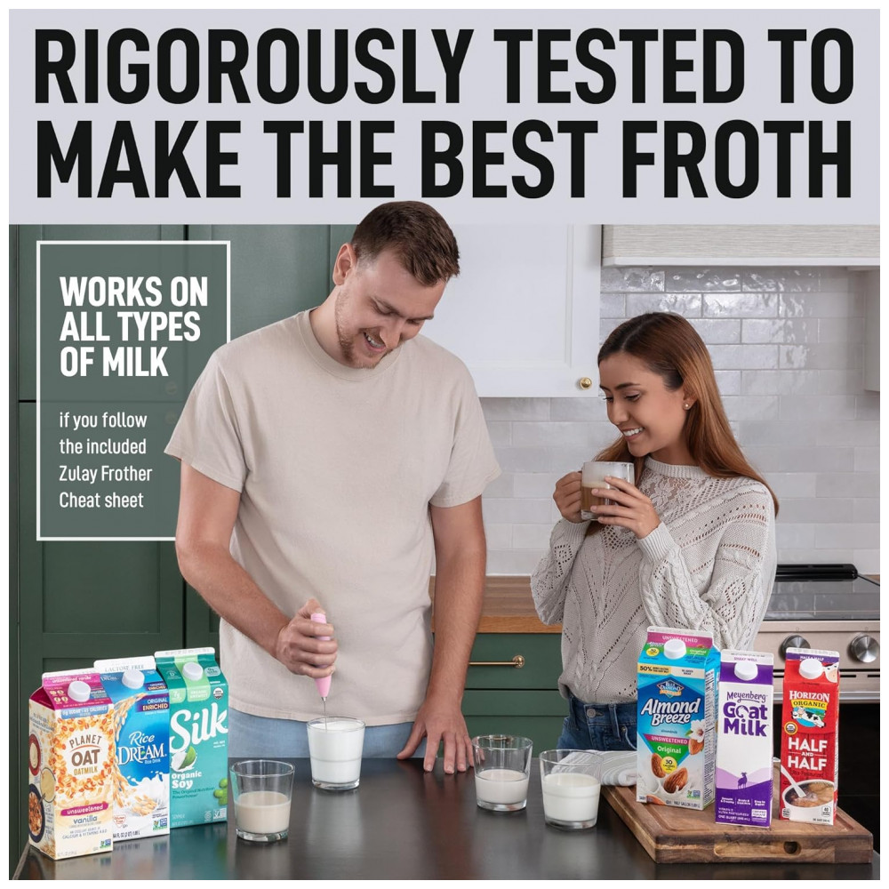 Qualidade comprovada e confiável usamos apenas materiais premium. A construção vai durar, apoiada por nossa garantia Zulay para não enferrujar ou quebrar, nunca. Nosso pequeno e eficiente espumante funciona com todos os tipos de leite meio a meio, creme, soja, amêndoa, caju, avelã, leite integral e outros laticínios, como manteiga ou creme.